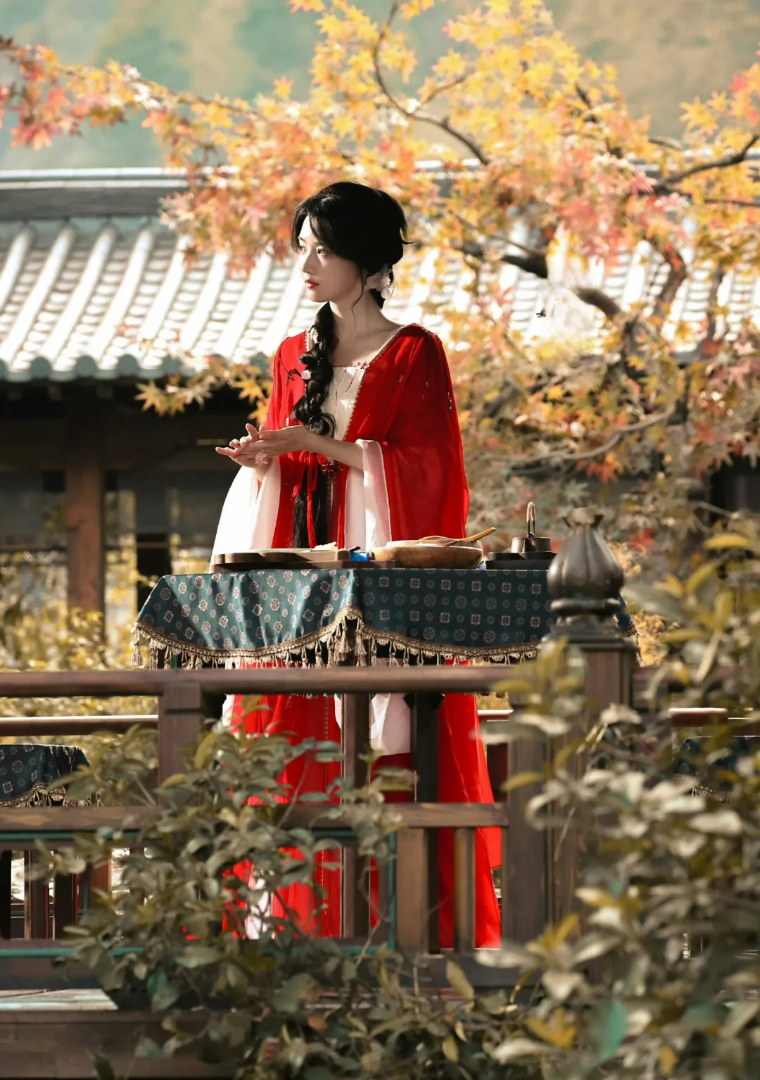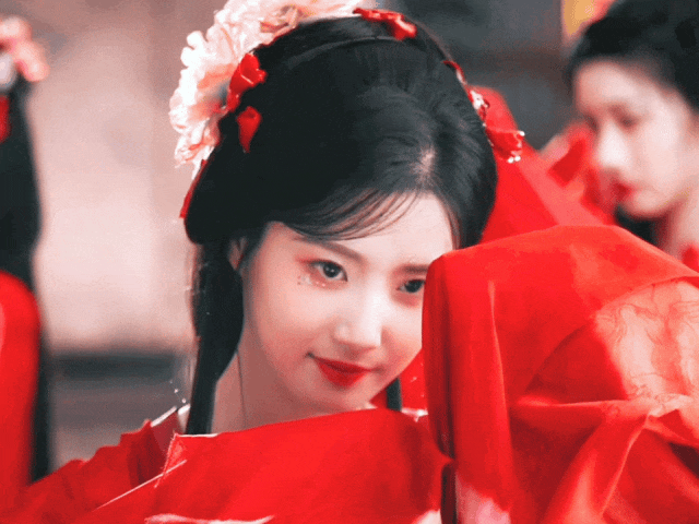 原以为粉色是最适合卢昱晓的颜色,没想到她和红衣造型的适配度也很高。路透里,卢昱晓身穿一袭红衣美得耀眼夺目,站在古香古色的庭院里,美得好似一幅画。