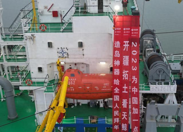 2023年1月14日,天鲸号在短短一天内就造出了3万平方米的海域新地,这一惊人的效率让在场所有人都感到震撼。