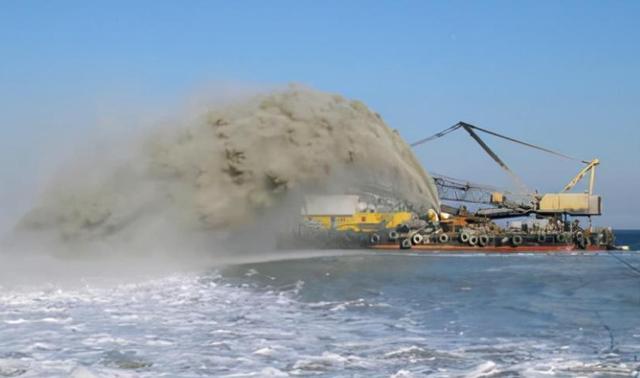 天鲸号实际上是一艘专门用于疏浚作业的工程船。在进行填海造岛工程时,首先需要进行土地吹填作业,而这项工作的核心设备就是挖泥船。从全球范围来看,各个拥有填海造岛经验的国家,普遍都采用现代化的挖泥船来完成这项工程任务。