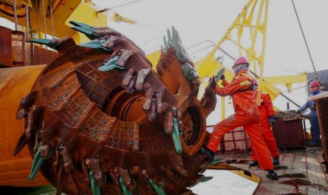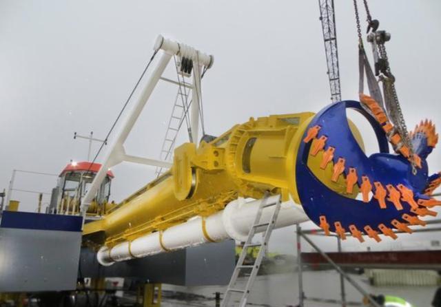 天鲲号的铰刀系统采用了四刀头设计,遇到坚硬岩石时,能够将其粉碎并混合成泥浆后直接抽取。这种结构使其在复杂地质条件下也能高效作业。