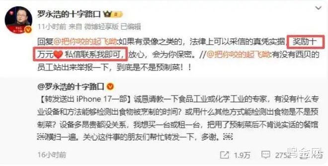 西贝怒撕罗永浩,老罗悬赏10万奉陪到底!