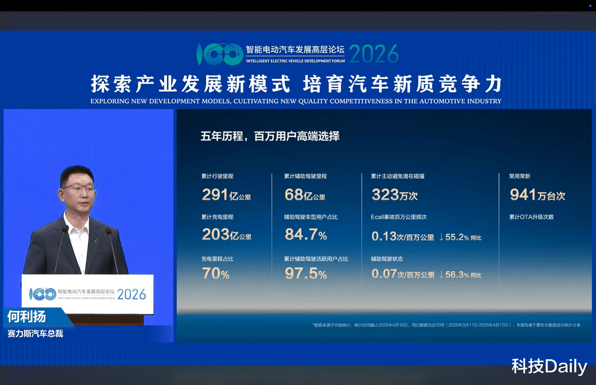 在以AI驱动的魔方技术平台的赋能下,问界为百万高端用户的出行筑牢了坚实的技术内核,电动化方面,用户累计行驶里程达291亿公里,其中充电行驶里程占比70%;智能化方面,累计辅助驾驶里程达68亿公里,辅助驾驶车型用户占比84.7%,累计辅助驾驶活跃用户占比97.5%;安全方面,累计主动规避潜在碰撞323万次,用智能安全牢牢守护每一位车主,持续践行“安全是最大的豪华”;同时,还为用户提供了941万台次OTA升级服务,确保用车体验常用常新。