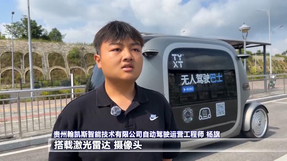 贵州翰凯斯智能技术有限公司自动驾驶运营工程师 杨旗:我们的无人驾驶小巴通过数据流实现“眼脑协同”机制,搭载激光雷达、摄像头、超声波雷达等多源传感器,实时采集周边交通环境信息,包括车辆位置、速度、行人动态以及交通信号状态等,采集到的数据会传送至车载智能决策系统,实现及时而精准的驾驶反馈。