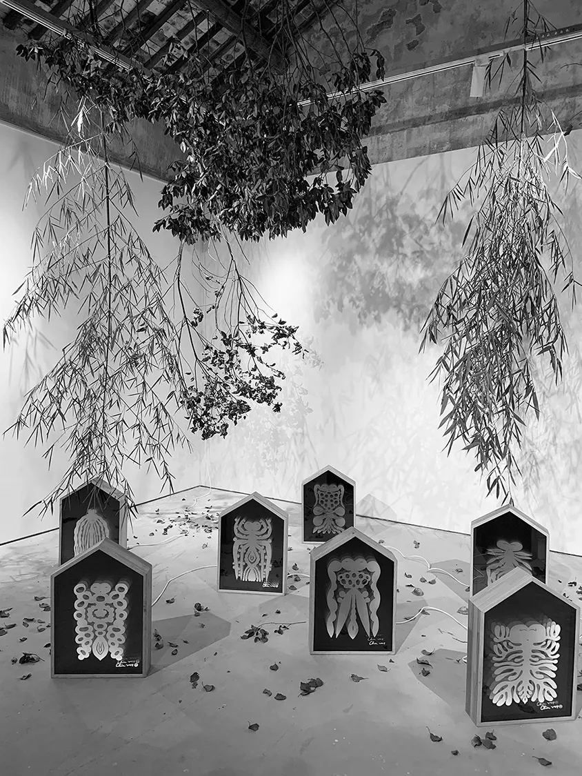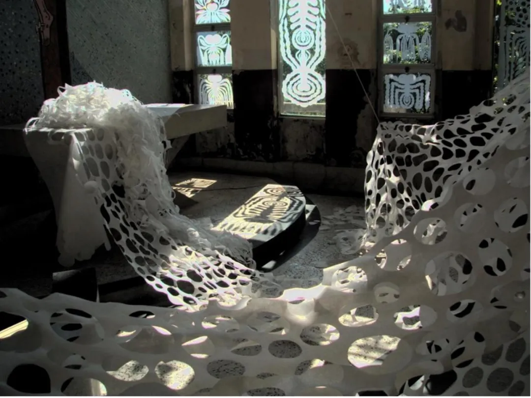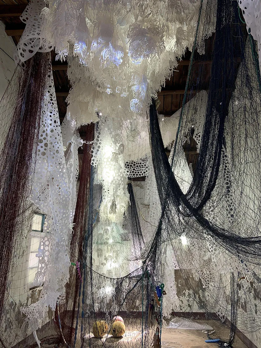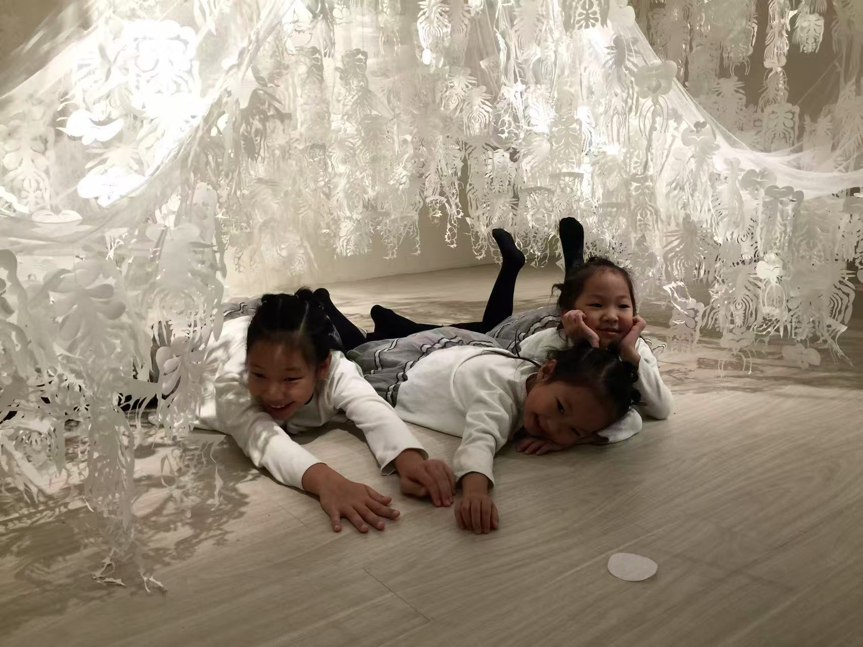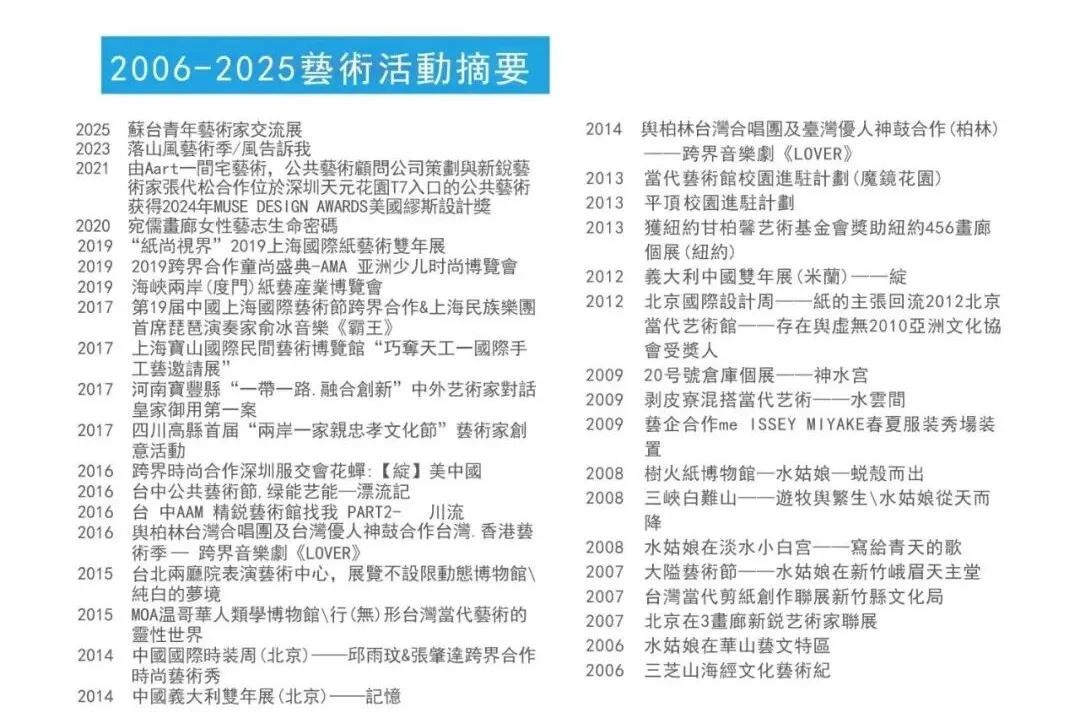 透过剪纸的创作和水的精神意志与母性的连结,是对于内心的转化,不受空间的限制,展开各种形式的创作、开展了剪纸的可能性。无限转化延伸的水姑娘繁行计划,正透过一张张的纸花持续传递。