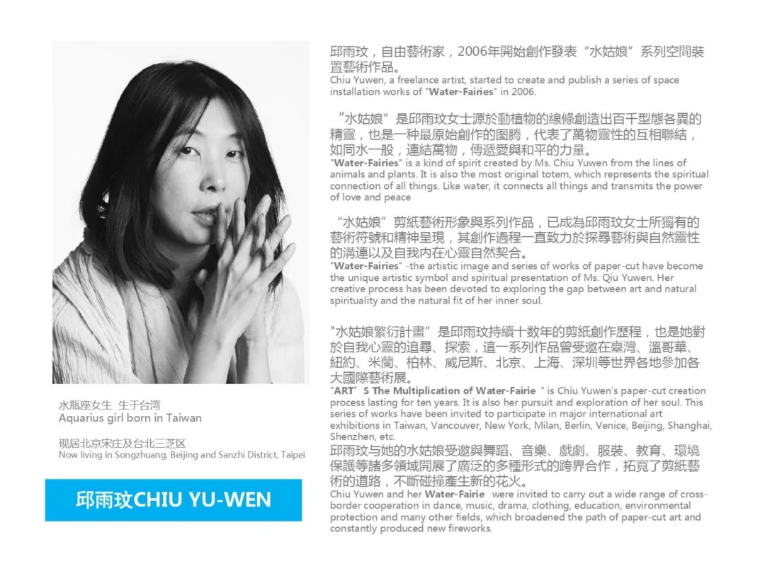 [水姑娘繁衍计划』是邱雨玟持续二十年的剪纸创作历程,也是她对于自我心灵的追寻、探索。水流动、滋养、无固定形体、善利万物而不争,也是女性的某个面向。
