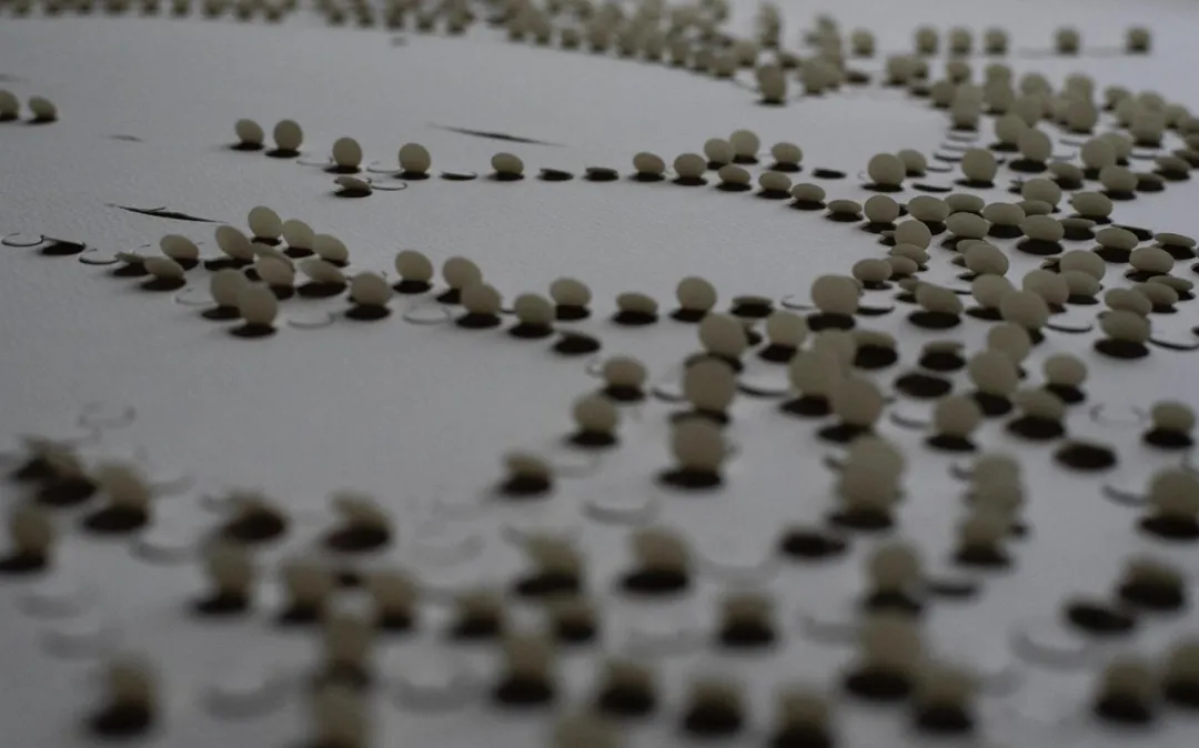 它创造的是四维的空间像度,纸本身于点、线、面无限向外延伸,而作品则是迈向另一个时间的向度。