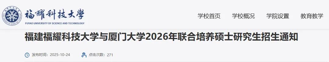 在此之前,10月23日、24日,福建福耀科技大学先后发布与同济大学、厦门大学2026年联合培养硕士研究生招生通知。