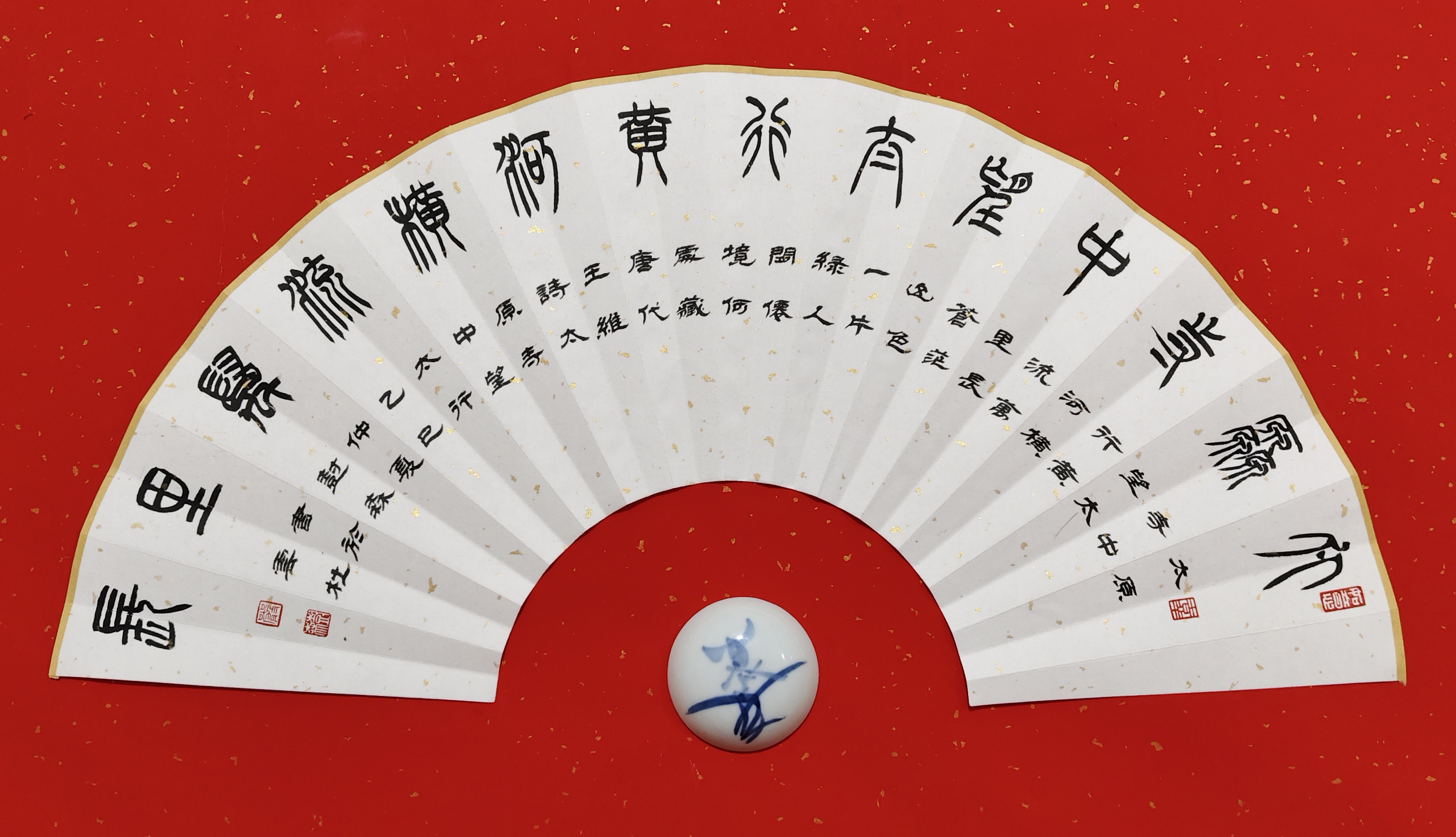 书法家严树森篆书扇面:《太原晚景》陈师道(北宋)
