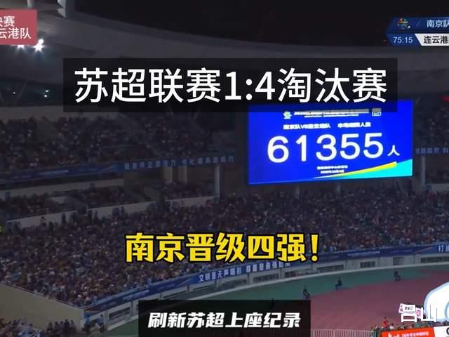 苏超作古的那个上座纪录是在9月27日晚,南京队对阵宿迁队的比赛,南京奥体中心涌入了61106名球迷。不过这个记录也仅存在了一周时间,10月4日,苏超南京对连云港的淘汰赛,现场观赛人数达到61355人,再次刷新赛事纪录,这也是中国业余足球赛事的最高纪录。