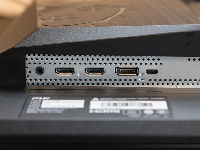 最后看看接口,提供2个HDMI 2.1、1个DP 1.4a、1个Type-C (支持15W反向充电)以及一个音频接口。