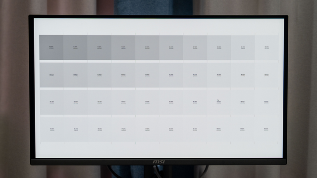 无论是从纯白到深黑的亮度渐变,还是从低饱和到高饱和的色彩饱和度渐变,这块屏幕都呈现出丝滑流畅的过渡效果。色彩与明暗的衔接自然顺滑,看不到生硬的跳阶或色块断层,充分验证了其宽广的动态范围和优秀的色彩处理能力。