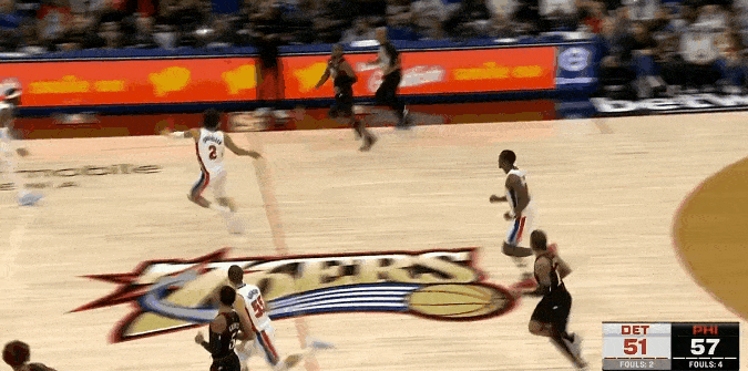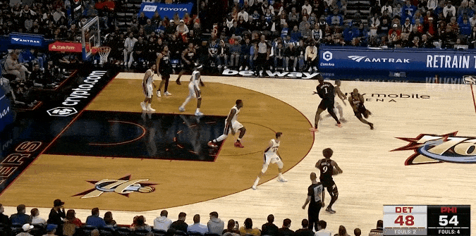 NBA常规赛,76人对阵活塞的比赛正在进行中。
