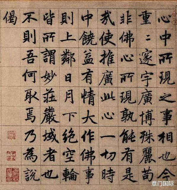 赵孟頫书法自成一派,世称“赵体”或“松雪体”,留下大量书作,在中国书法史上具有承上启下的作用,凭借其个人魅力,聚集了一大批书家,影响了整个元代的书法,是元代书法的最杰出代表,凭借文艺、书画而得到元几代帝王的赏识,官至一品。 《湖州妙严寺记》卷首赵氏自书小篆题额,正文楷书秀丽端庄,法度大气,笔势舒展灵活精妙。具有极高的书法造诣,是后人研习赵氏楷书的最佳范本。此卷为赵孟頫楷书典型之风格,中正内敛、法度精严。楷书中带有行意,动静相合。观此卷书法,一是在用笔上,将晋唐各家精髓糅合得恰到好处,不露痕迹。二是结构上规整有度,开合适当。三是风格上刚柔相济,以柔为主,绵中有针。