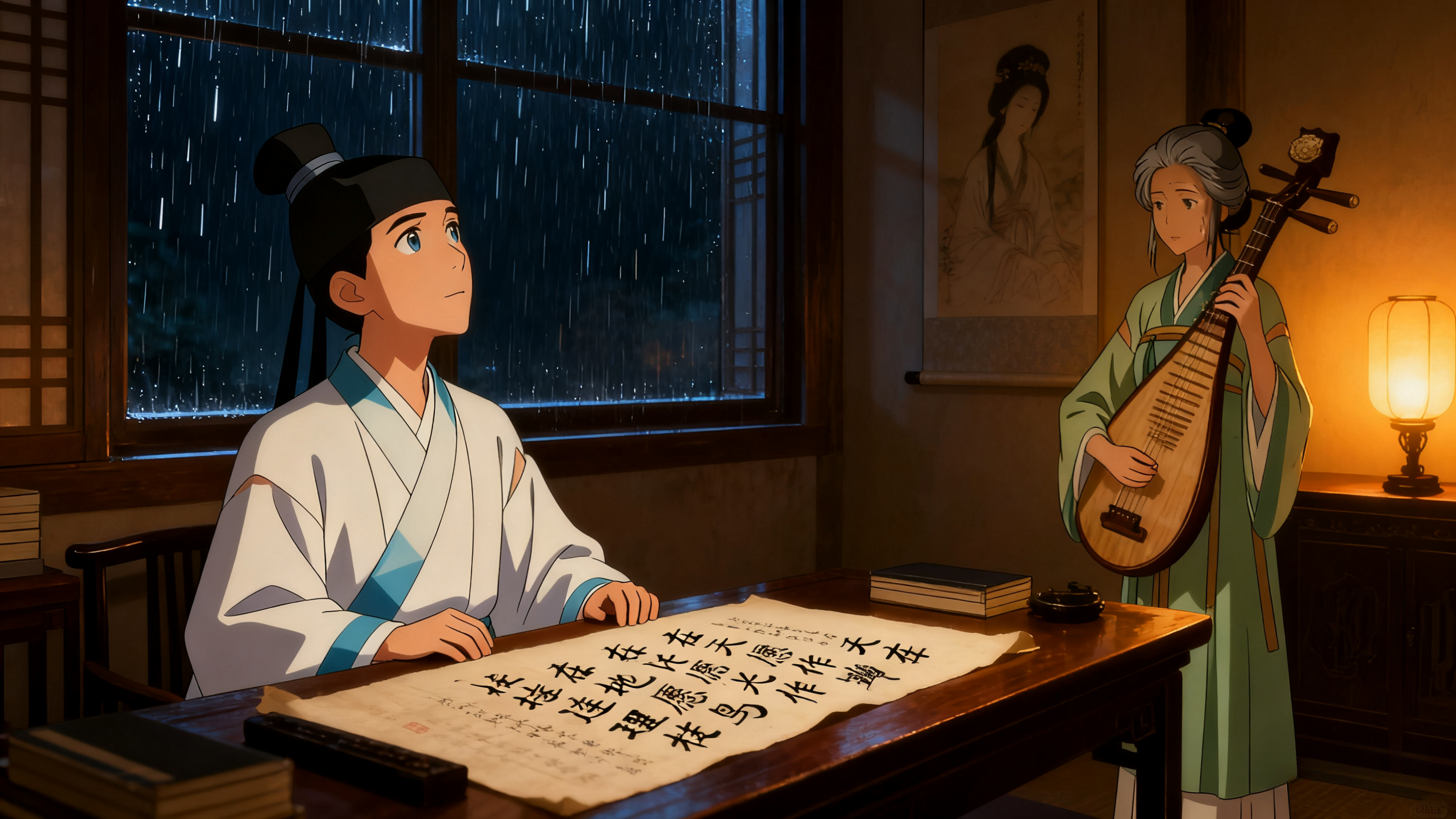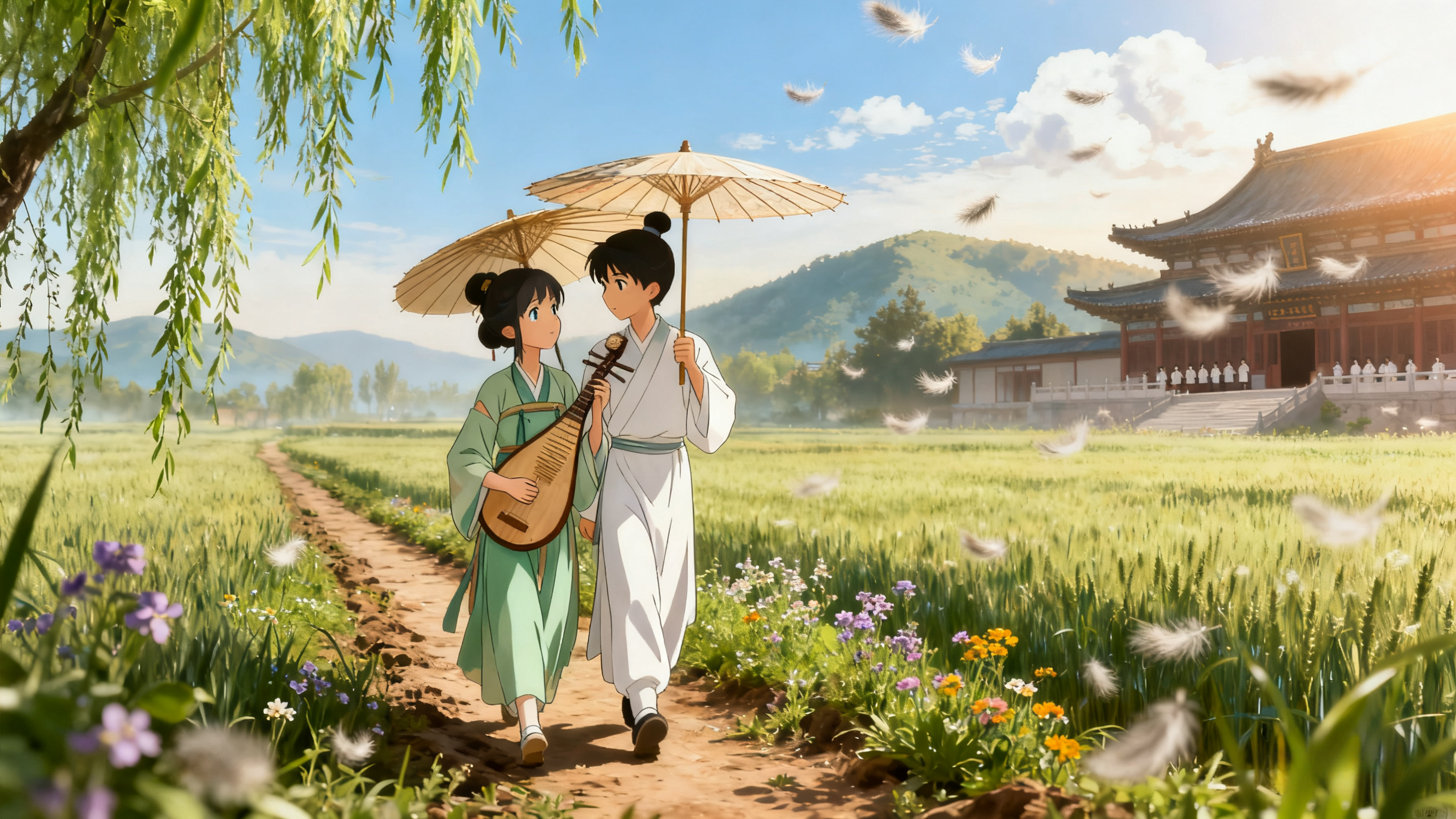 贞元初年,河南新郑的一个春日清晨,阳光洒在田埂上,柳絮飘飞。少年白居易随父迁居乡间,遇见了住在隔壁的湘灵——一个清秀灵动、善弹琵琶的农家少女。