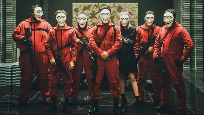 不复杂的故事改编让东亚人民更能接受设定,本土化做得很好,虚构的南北统一共同经济区表达了主创人员对南北韩统一的殷切期盼,面具也是根据韩国传统面具改良过。教授和柏林的选角都很不错,混淆善恶的设定强行让局长这种又蠢又坏的角色作威作福,看着就让人很生气,故事情节非常紧凑,没有对人质安危的担心,倒时时关注劫匪,毕竟都是小人物。