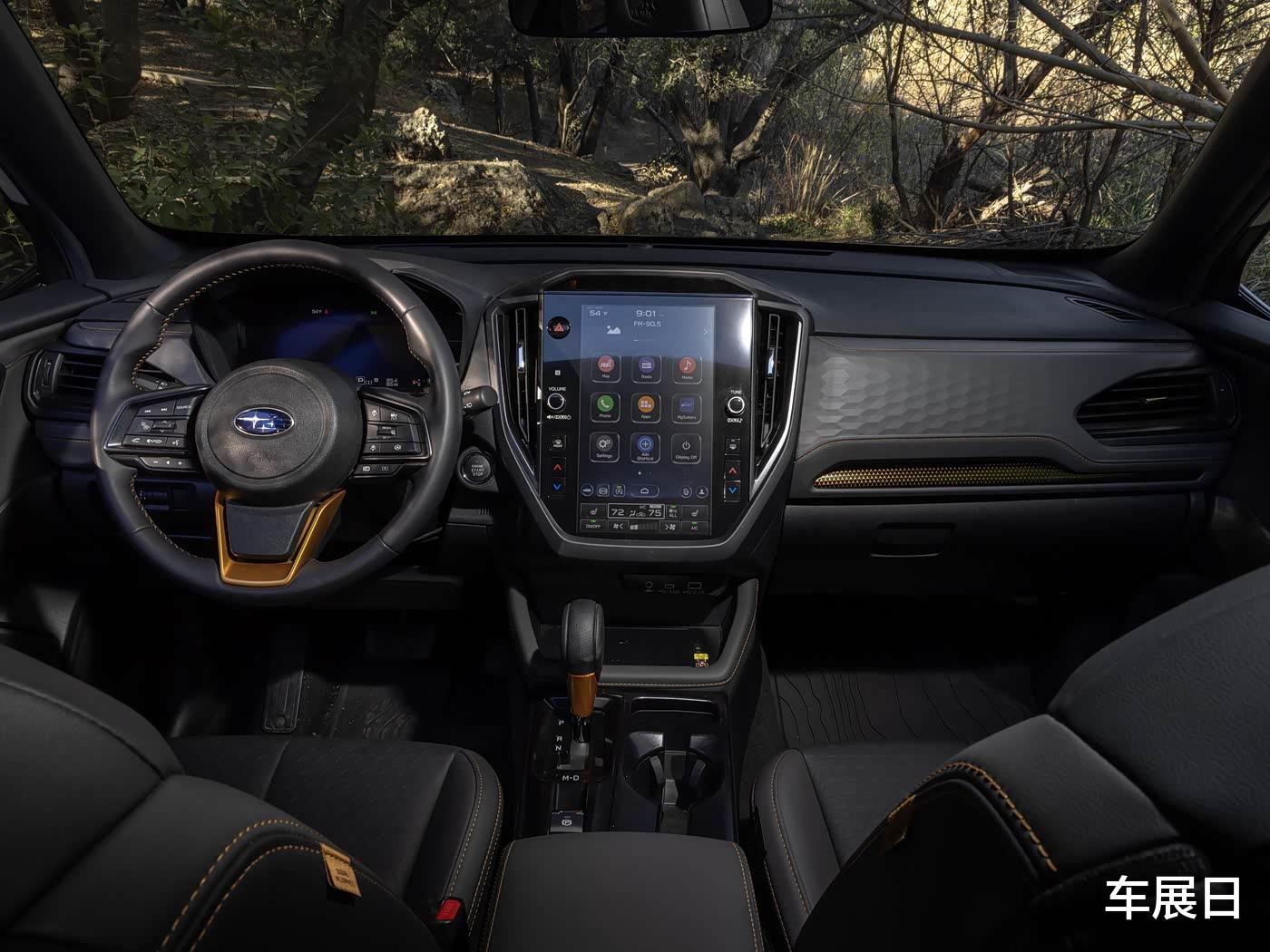 全新斯巴鲁傲虎Wilderness也在2025年东京车展上亮相。它配备了黑化越野套件,大尺寸黑色格栅和分体式LED大灯搭配矩阵式灯组,前保险杠有导流槽和新射灯。侧面车窗较大,车尾倾斜角度陡,轮拱分段式,还有黑化17英寸轮圈及全地形轮胎,车尾造型方正,分段式LED尾灯和大尺寸尾门,黑色后包围。这款车的离地间隙为241毫米,还配备了自适应减振器和专属标识。