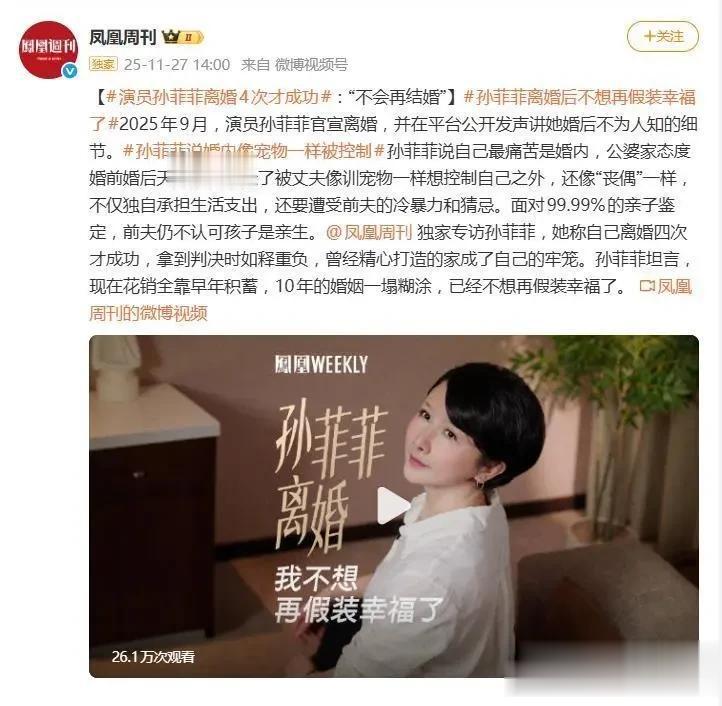 孙菲菲丈夫是美籍身份,不断拖延司法进程,就是不想让她好过。孙菲菲起诉了四次,才终于等到了离婚判决书。