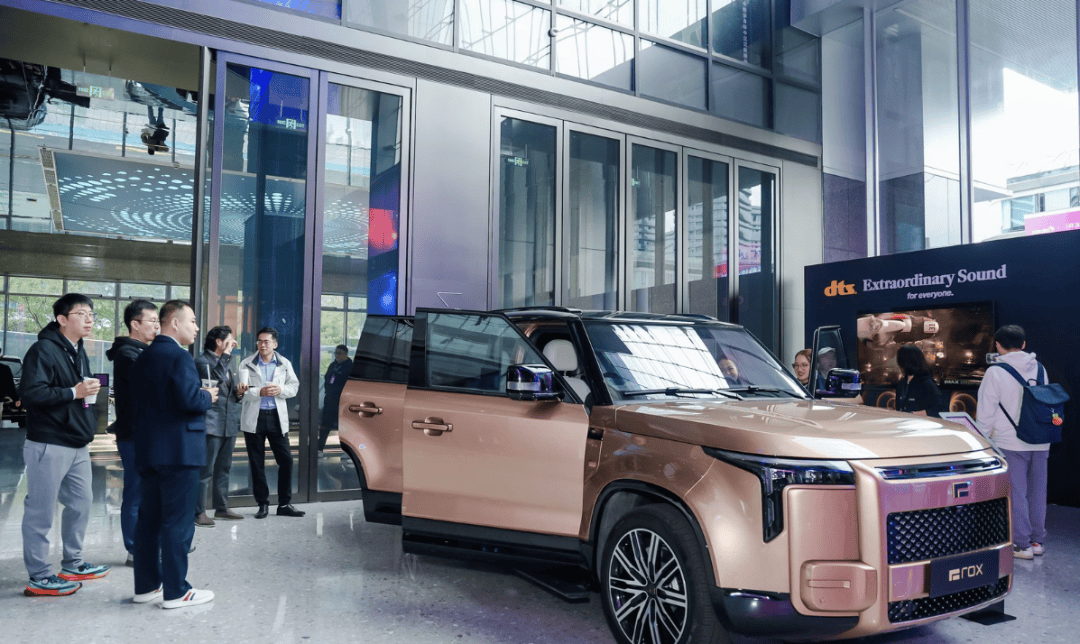 智能座舱体验区毫无悬念地成为全场焦点。ROX、宝马等品牌展车全面展示了以 DTS AutoStage 为核心的全系列车载音视频解决方案。作为面向车载娱乐的全球化座舱平台,DTS AutoStage 整合音频、视频、游戏与实时资讯,凭借先进音频处理技术与云端数据支撑,让汽车真正升级为移动娱乐中心。极石旗下ROX ADAMAS 作为中国车企中首款搭载该系统的量产车型,更让驾乘人员通过中控屏与吸顶屏即可畅享全球主流内容,智能推荐功能让 “一键触达极致体验” 成为现实。