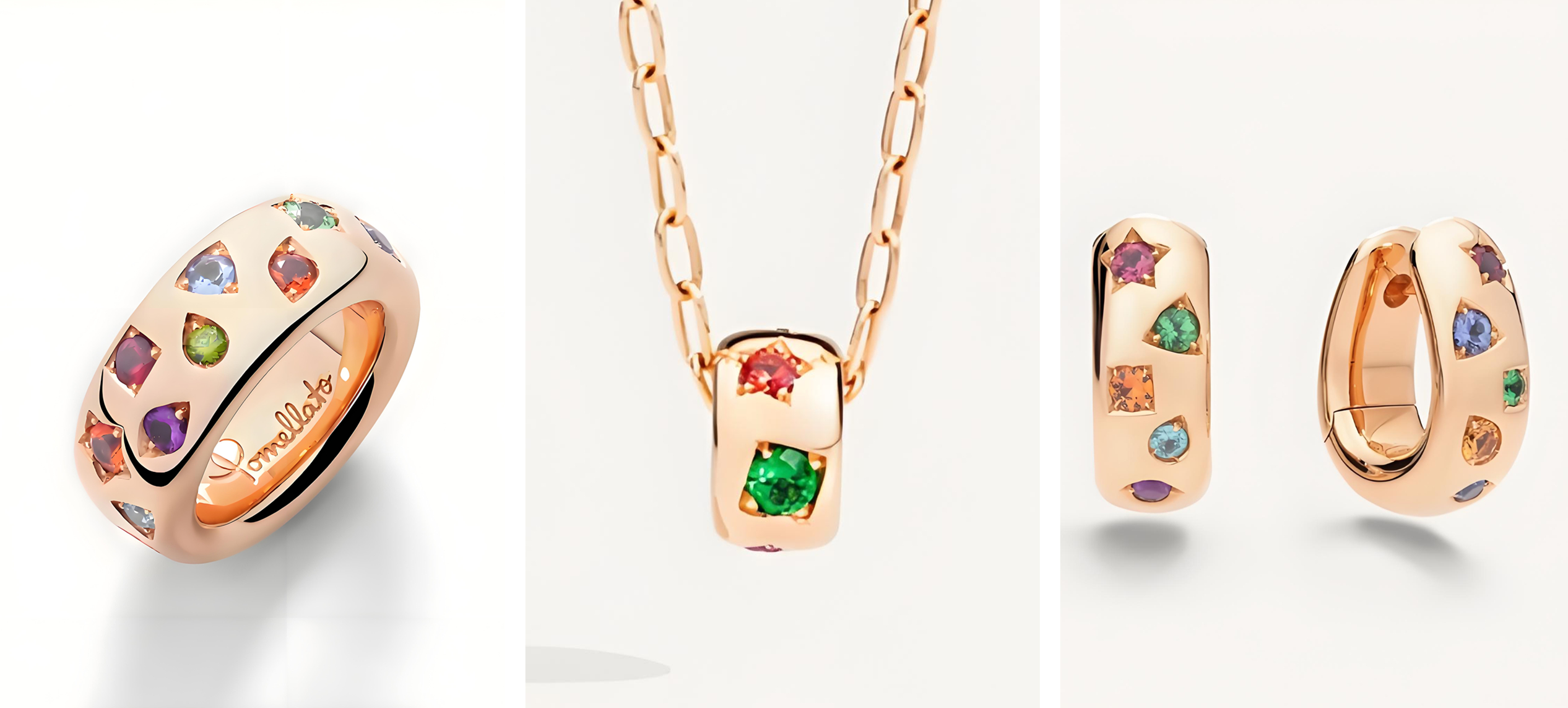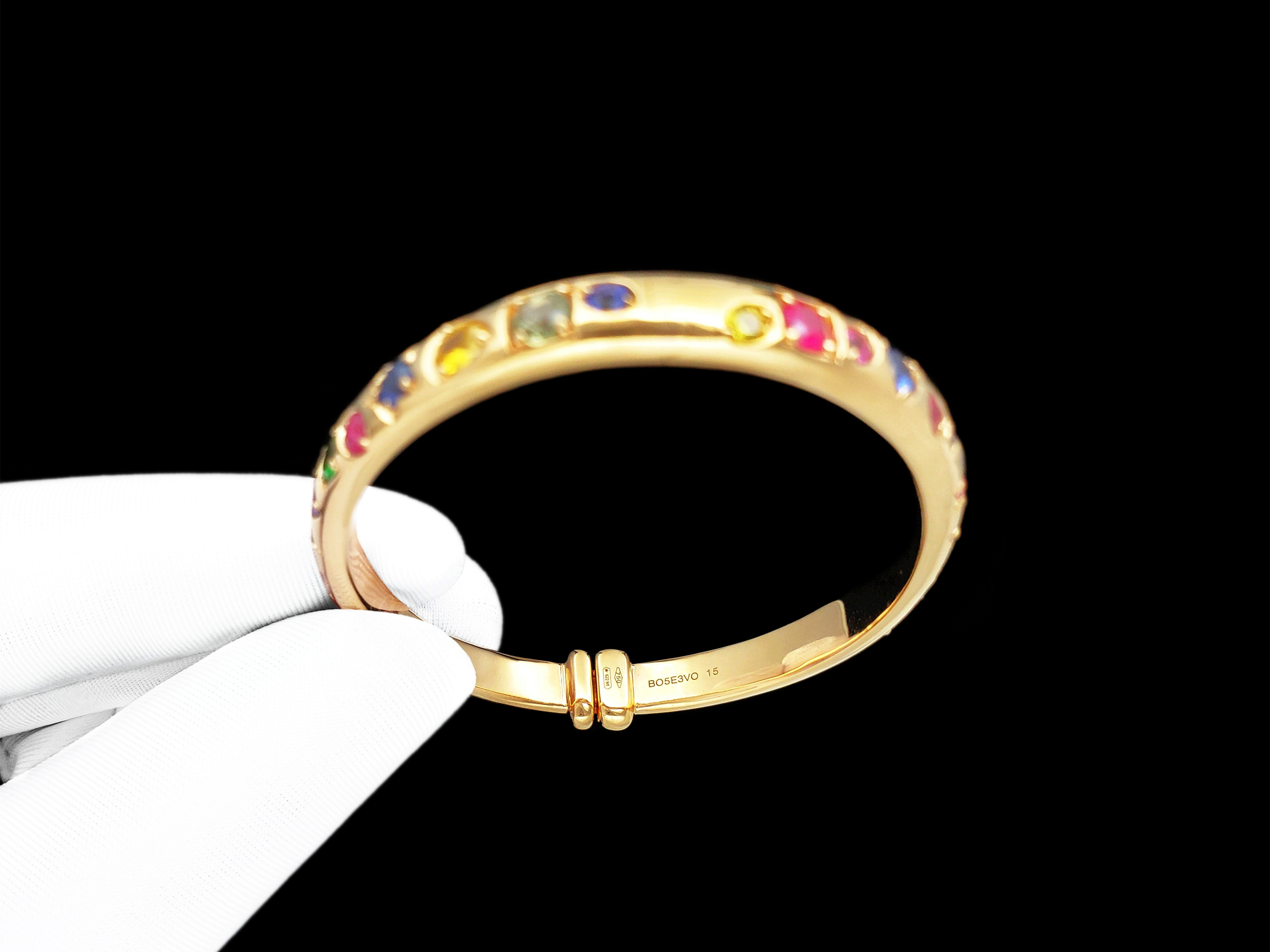 Pomellato宝曼兰朵Iconica系列18K玫瑰金满镶彩色宝石标志手镯