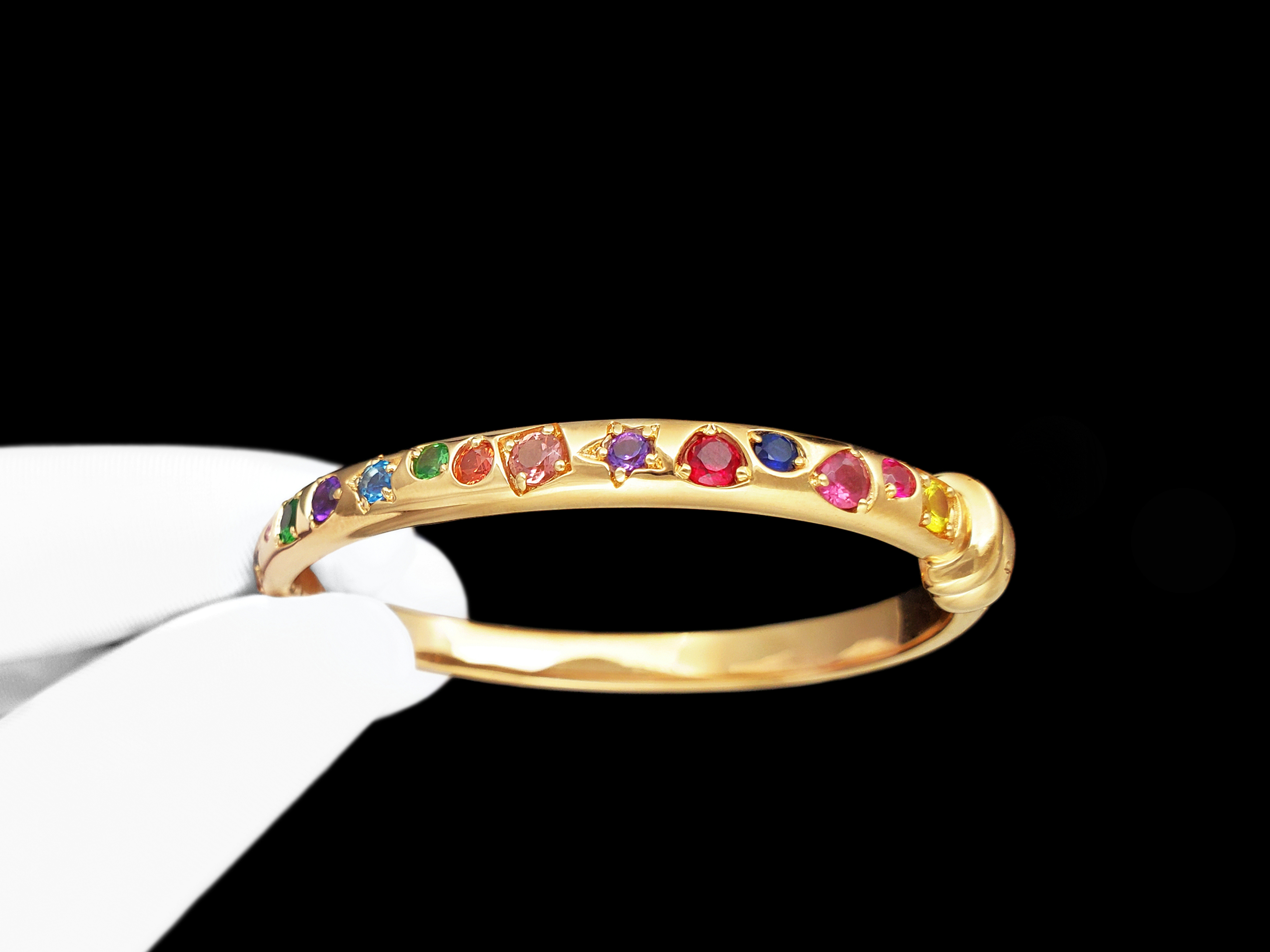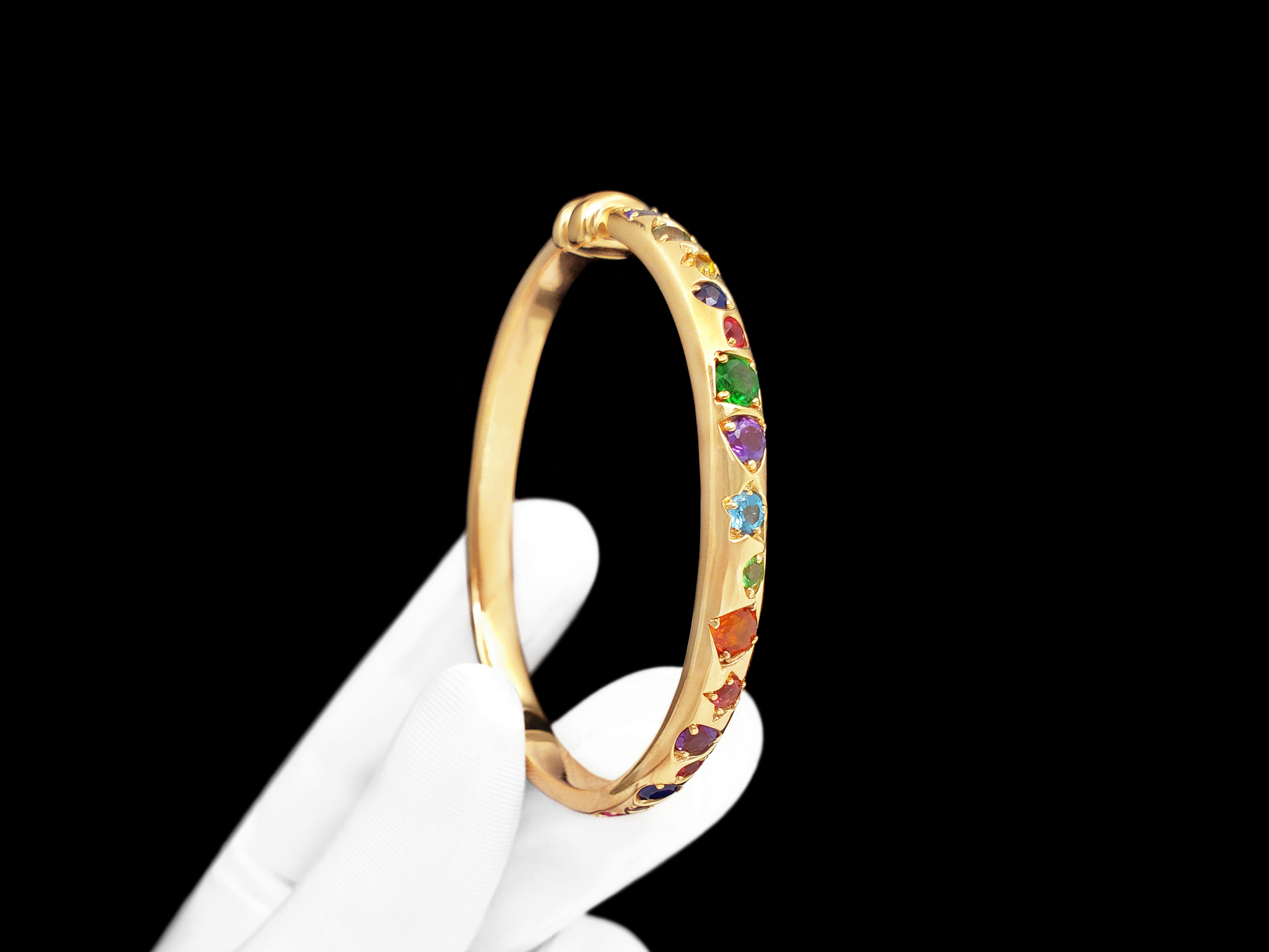 彩宝手镯的介绍先告一段落,但宝曼兰朵的精彩远不止于此。如果您也钟情于这份缤纷的美学设计,品牌方还匠心打造了同类型的戒指、项链、耳钉等等,让璀璨的光影以统一的艺术语言在身体的不同部位绽放开来。此外,家族内另有一只镶嵌周身碎钻的相同款式,在保留灵动特质的同时,更增添了一丝奢华的贵气。当然,如果您青睐于Iconica系列圆滑饱满的金属感,另列举多款同类别的手镯供您参考。