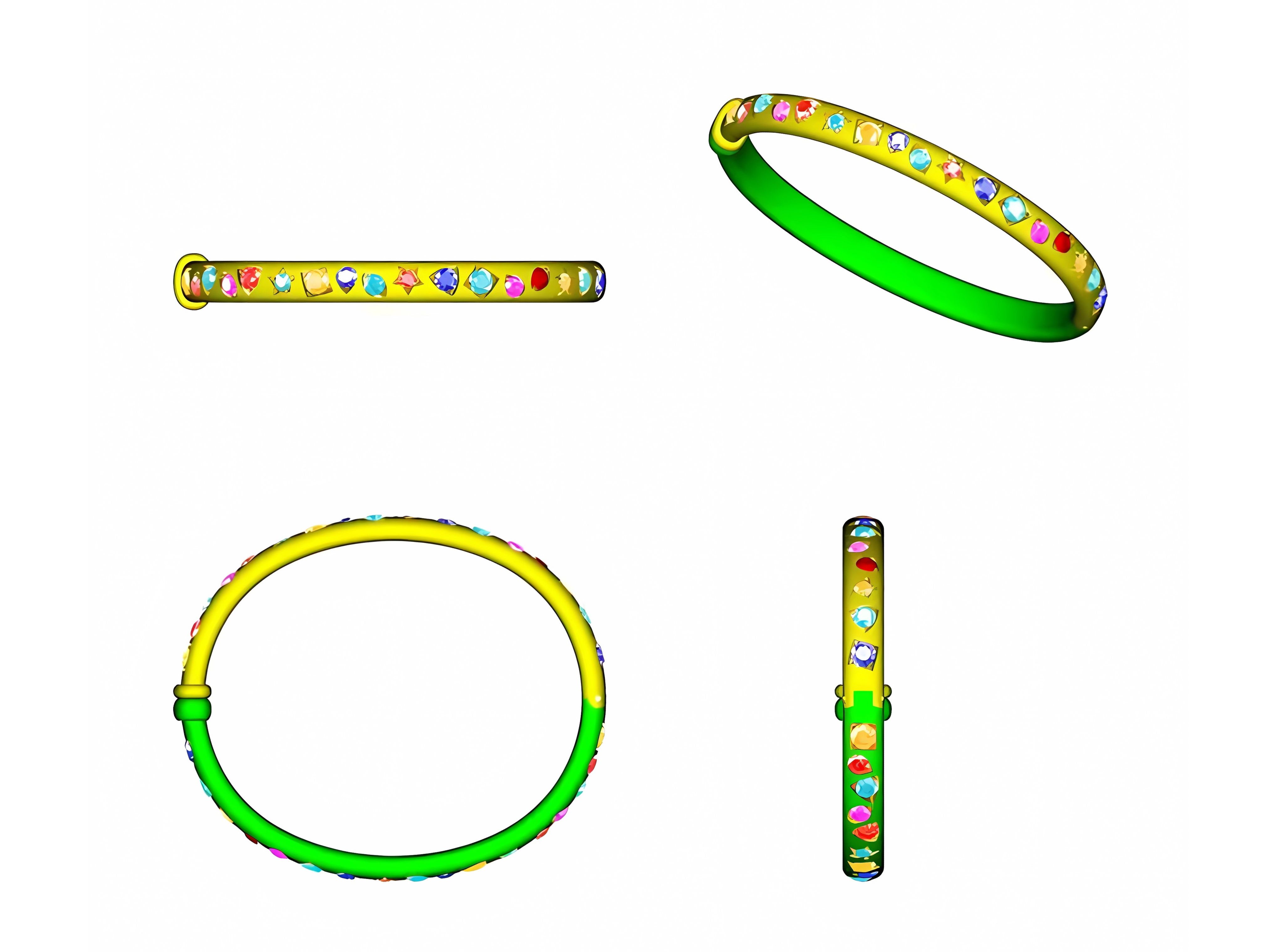 Pomellato宝曼兰朵Iconica系列18K玫瑰金满镶彩色宝石标志手镯CAD图