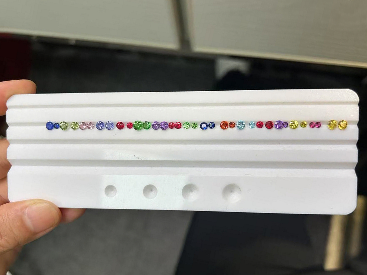 珠宝最引人注目的地方,当属表面这些五彩斑斓的宝石。看似随性的排布却暗藏有序的章法,仿佛将彩虹揉碎洒落在金色的锦缎上,营造出如梦如幻的视觉盛宴。虽然他们有的是正方形,有的是水滴形,有的是三角形……但宝石本身都统一采用圆形明亮式切割。品牌方将底部的镶座设计成各式各样的俏皮形态,从而让中心的彩宝展露出变幻莫测的几何美感。