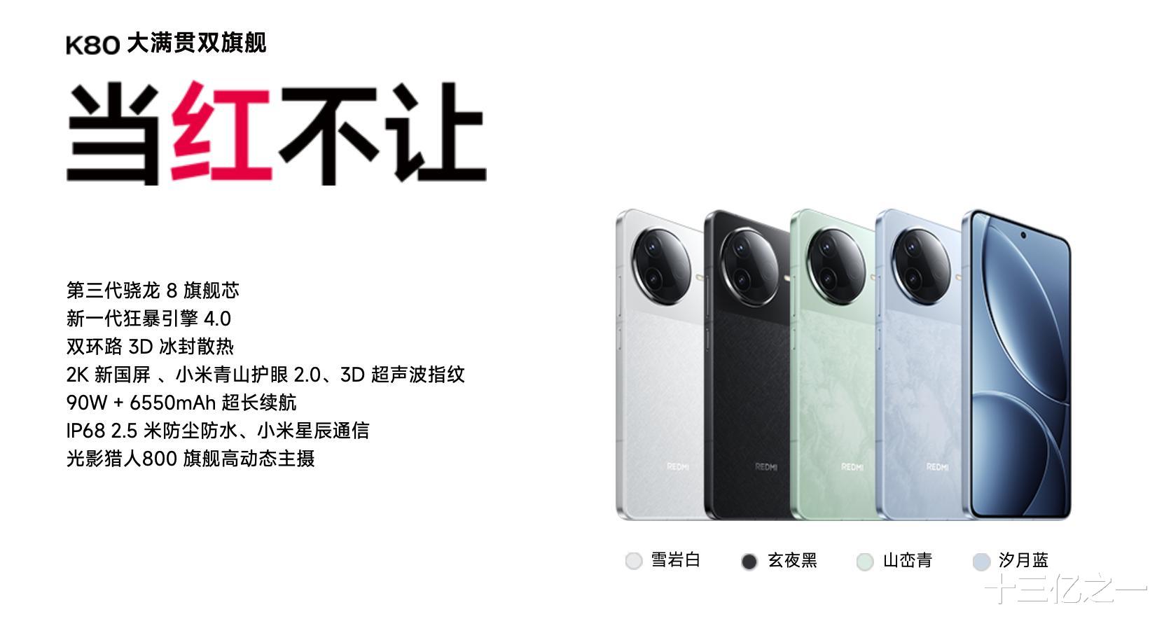 之所以k80作为标杆,他用了最轻的刀法,当然也是最贵的机型,在同样骁龙8gen3平台下,k80有2k屏、超声波屏下指纹、ip68防水、金属中框+玻璃机身、6550mAh+90W电充,以上这些将是各家展示刀法的点。