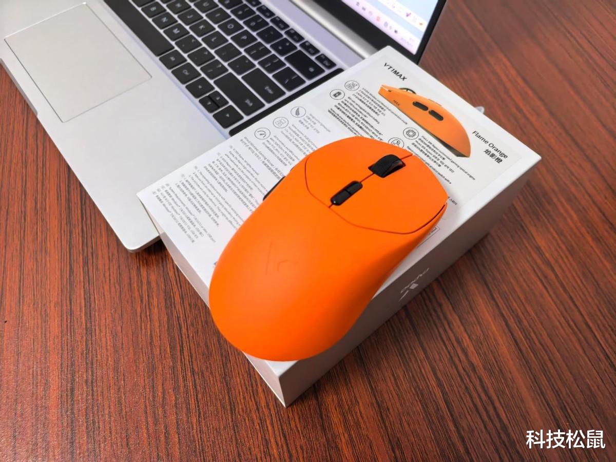 VT1二代系列采用中小手万金油的右手对称设计,并特推内扣抓握,拥有两种表面触感,亲肤防滑涂层【VT1MAX全系和VT1焰影橙】和类肤磨砂工艺【VT1星空黑,皎月白】,手感好到爆。VT1二代采用38mm低背,侧腰内凹提升抬鼠的稳定性,右侧手指引导弧线增强关节稳定性,采用窄屁股设计,指尖控制更灵活。实测含收纳仓盖重量为55g,比市面上大部分鼠标都轻,越用越喜欢。