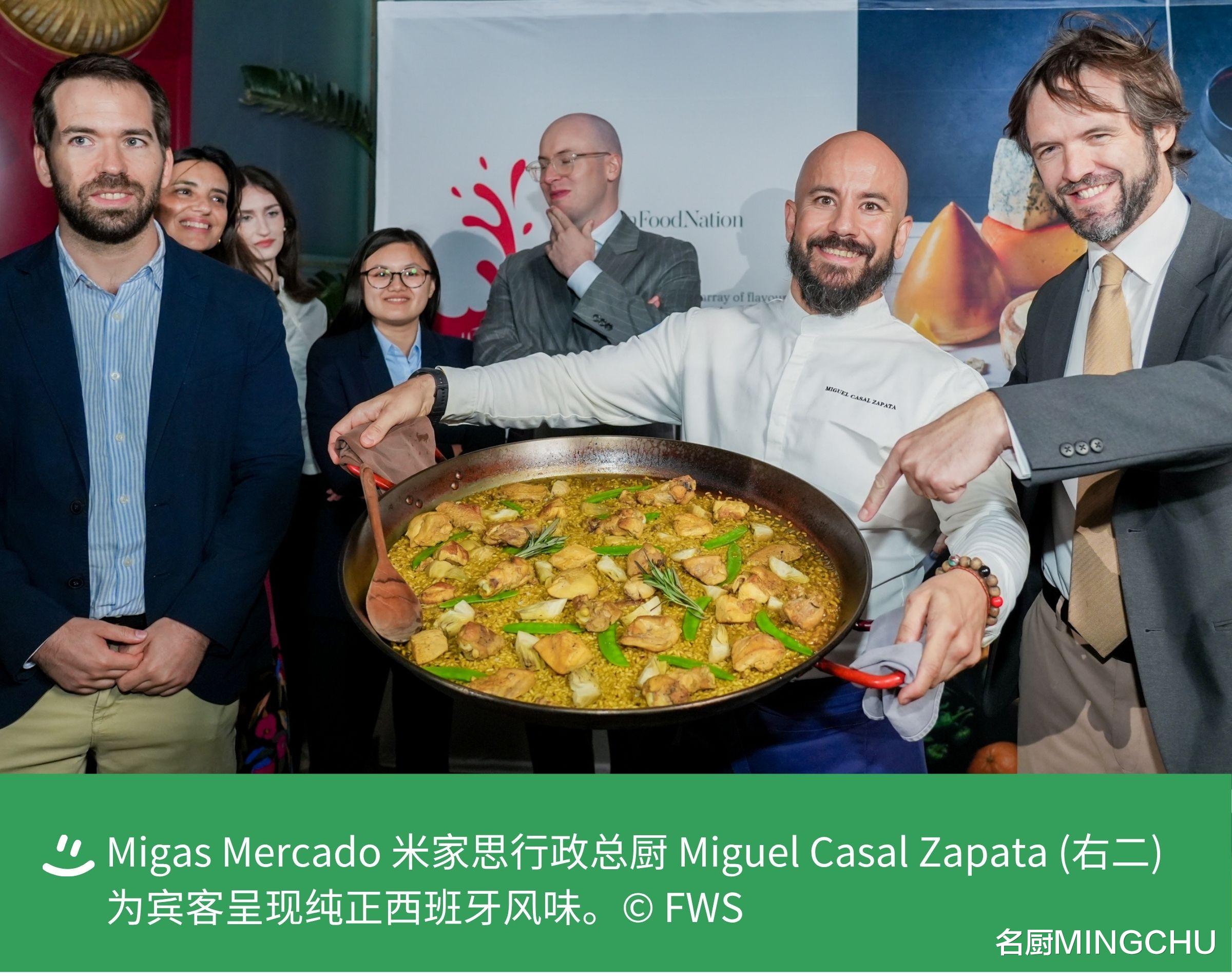 Migas Mercado 行政总厨 Miguel Casals Zapata 携其团队为嘉宾精心烹制了蕴含纯正西班牙风味的佳肴,菜品既有冷切拼盘配番茄⾯包、⽕腿丸⼦、加利⻄亚⻛味橙⾹奶油,鲜橙及迷迭⾹沙拉,也有瓦伦⻄亚⻛味什锦饭配鸡⾁,豌⾖及洋蓟等,让来宾们尽享地道西班牙美食风情。