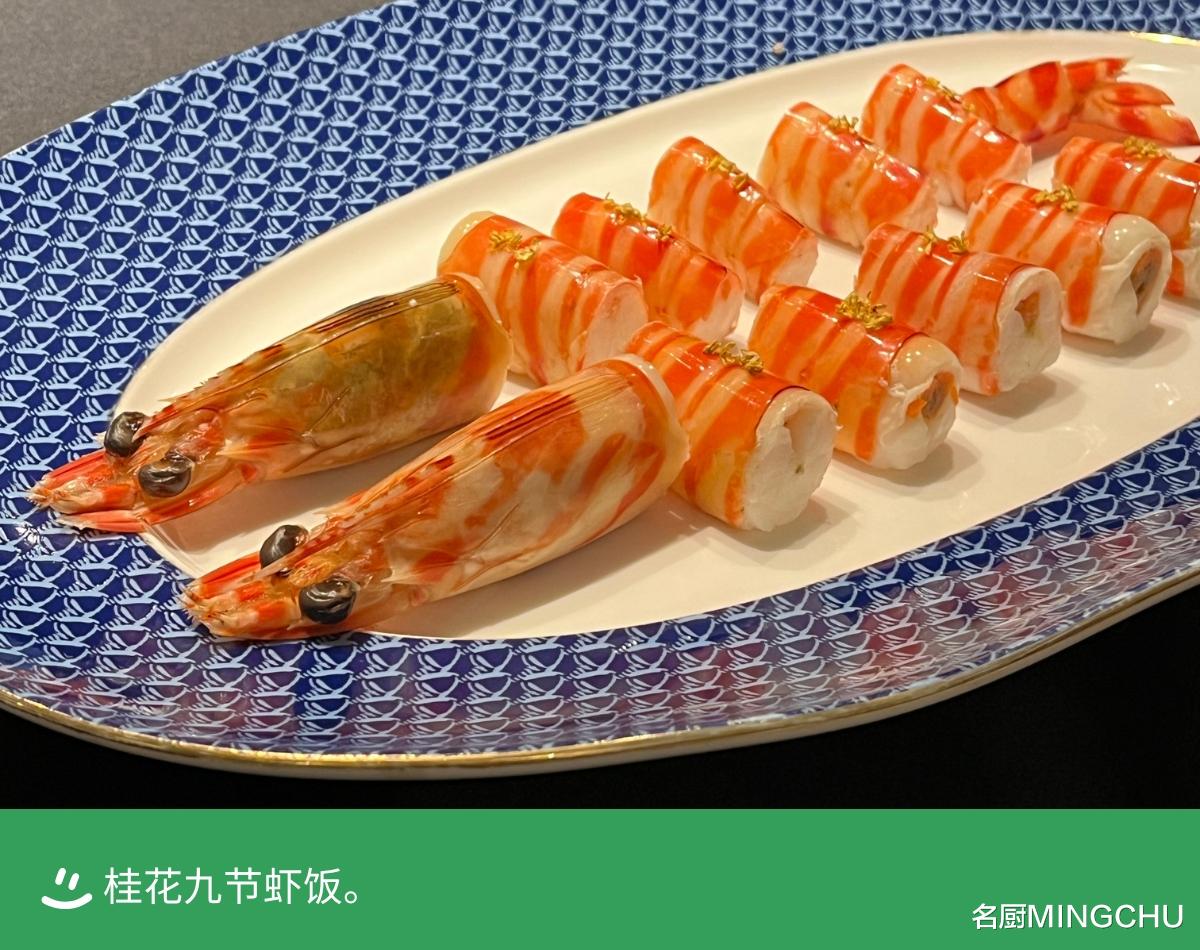 桂花九节虾饭温州人以”虾“当饭,追求极致的原味和鲜甜。开渔季的开始,也预告着九节虾进入最佳赏味期。每日海捕新鲜送至餐厅的九节虾,一只足有小臂大小,熟冻来做,能把其弹嫩的个性表达得淋漓尽致。热与冷的碰撞,让虾肉紧实,更显脆嫩,吃口清爽,肉滑味鲜,酱油点睛,更显甜嫩本色。