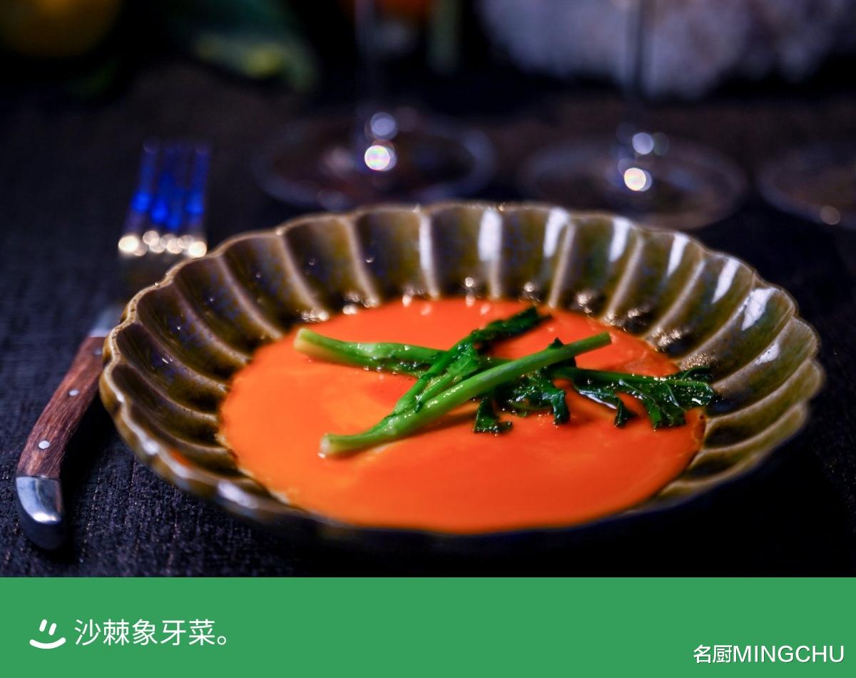 沙棘象牙菜选用宁夏高原沙棘鲜榨成酱,带着自然微酸;搭配番禺可生食的象牙菜,橙红酱色一眼开胃,入口是层次分明的酸甜,像把秋日阳光嚼进嘴里。