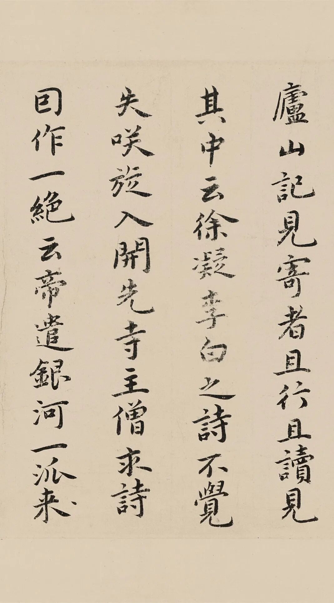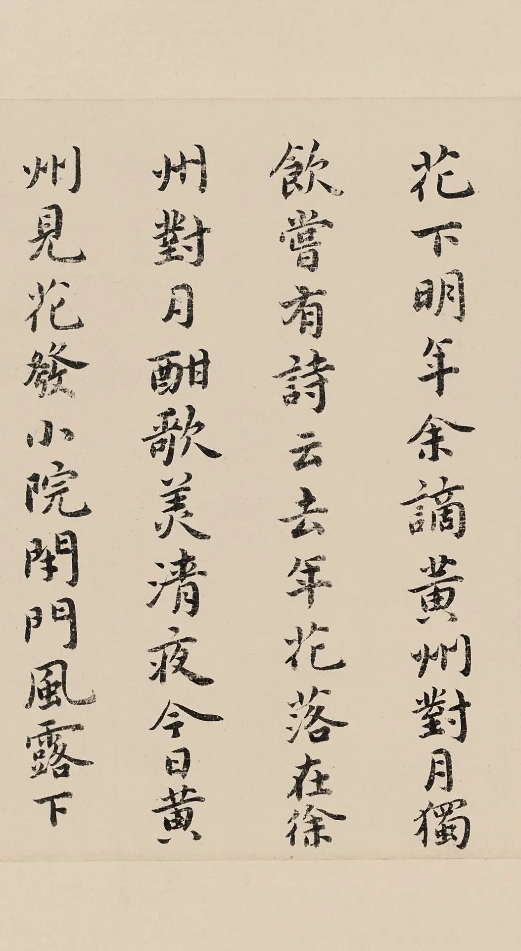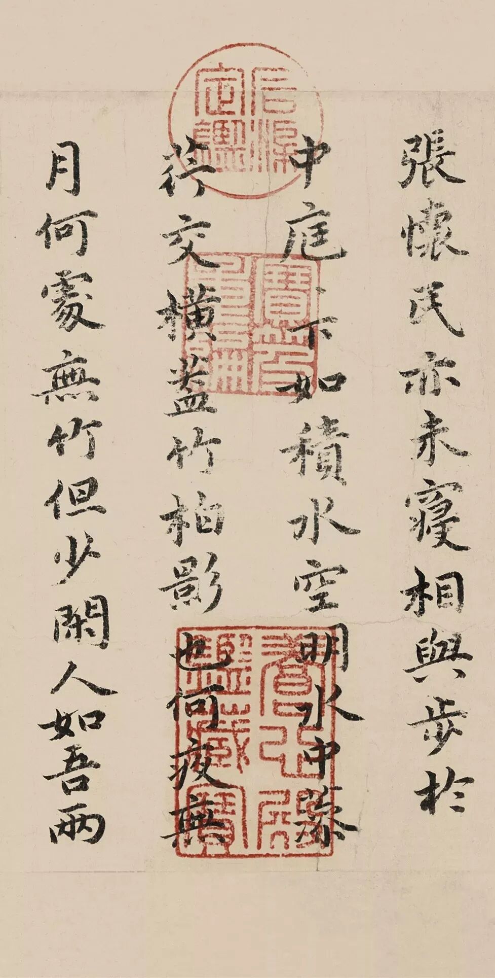 5. 与欧阳询、颜真卿之关系文彭评此卷“出入清臣诚悬间”。颜真卿(清臣)楷书雄强厚重,柳公权(诚悬)楷书刚健挺拔。祝允明此卷既有颜体的雄强骨力,又有柳体的刚健峻整,如“庭”“下”“如”“积”等字,可见其融汇众长之功。