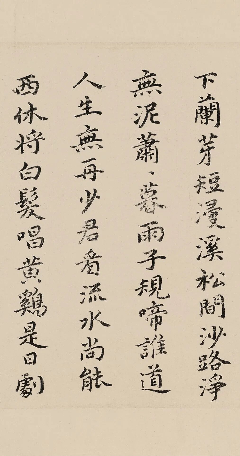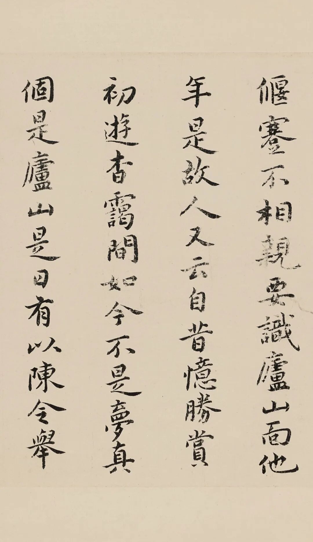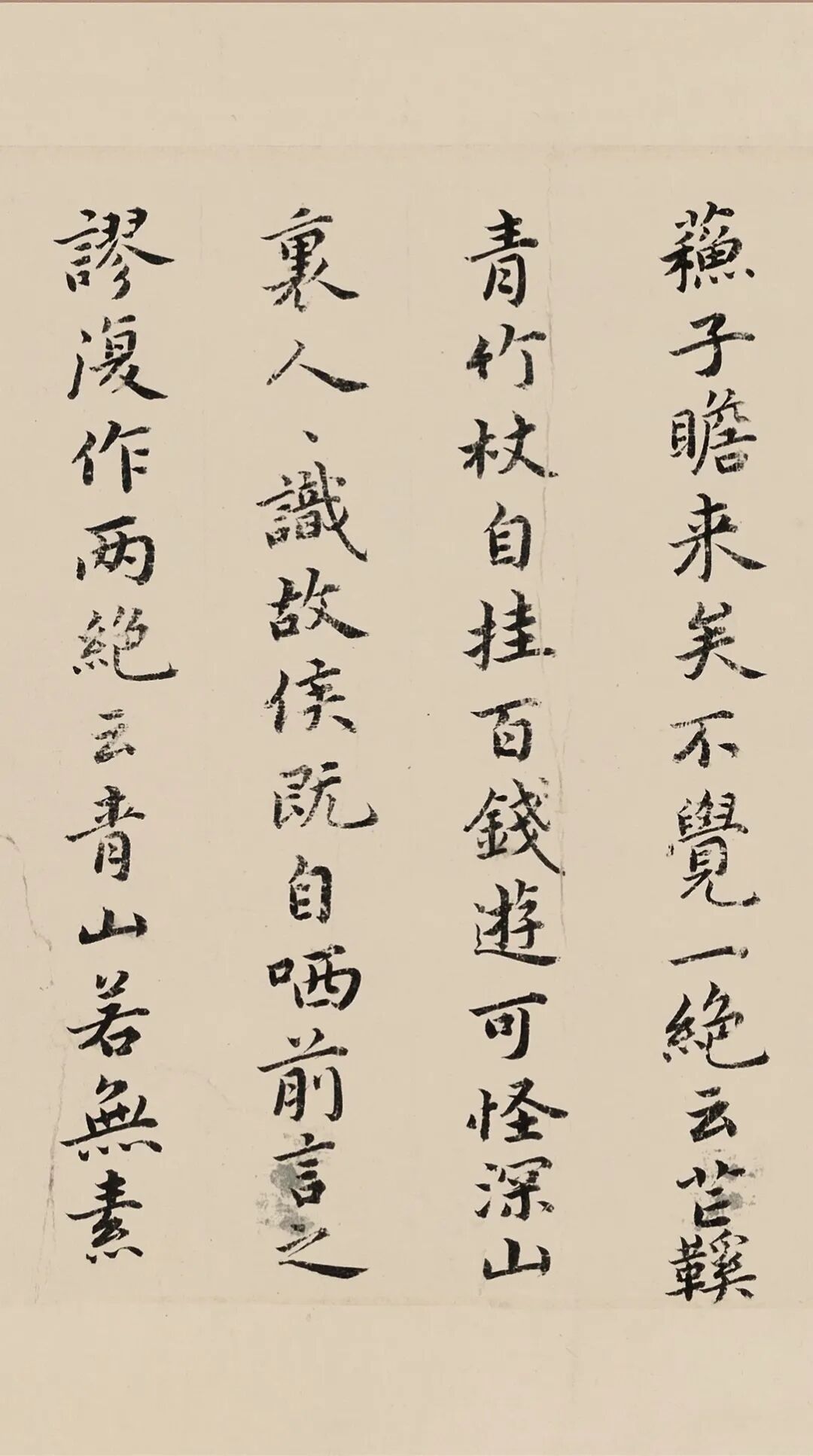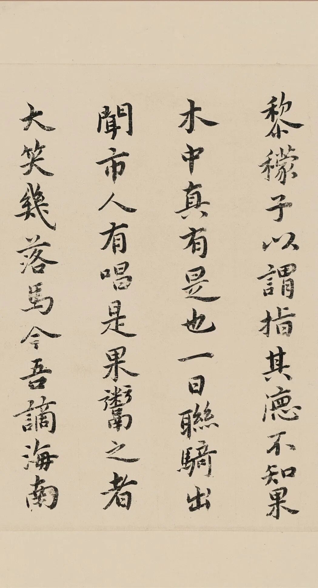 5. 与欧阳询、颜真卿之关系文彭评此卷“出入清臣诚悬间”。颜真卿(清臣)楷书雄强厚重,柳公权(诚悬)楷书刚健挺拔。祝允明此卷既有颜体的雄强骨力,又有柳体的刚健峻整,如“庭”“下”“如”“积”等字,可见其融汇众长之功。