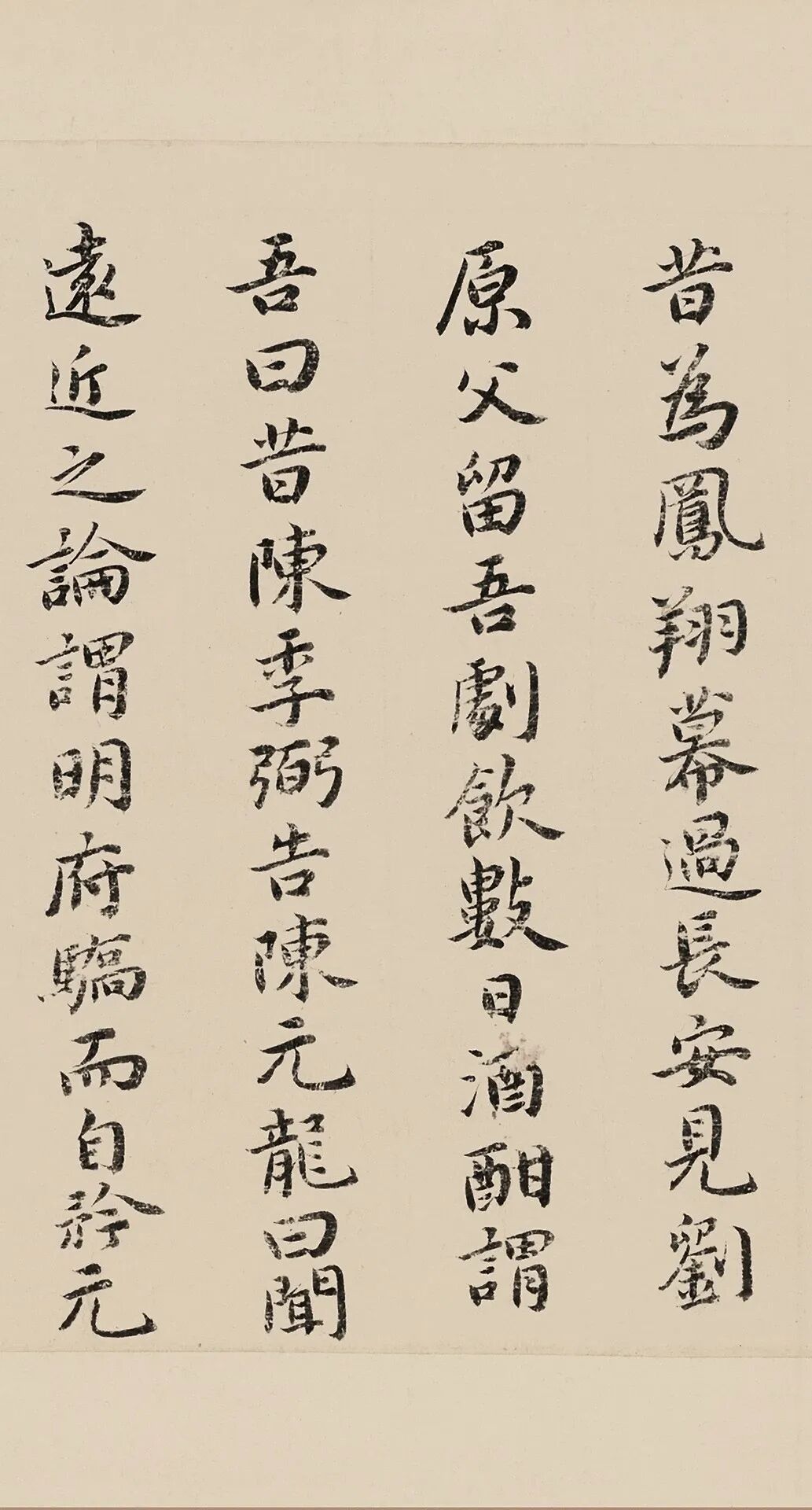 记刘原父语昔为凤翔幕,过长安,见刘原父,留吾剧饮数日。酒酣,谓吾曰:「昔陈季弼告陈元龙曰:『闻远近之论,谓明府骄而自矜。』元龙曰:『夫闺门雍穆,有德有行,吾敬陈元方兄弟;渊清玉洁,有礼有法,吾敬华子鱼;清修疾恶,有识有义,吾敬赵元达;博闻强记,奇逸卓荦,吾敬孔文举;雄姿杰出,有王霸之略,吾敬刘玄德。所敬如此,何骄之有?固仰天太息。癸酉八月十二日,步月宿东禅寺书此。枝山祝允明。
