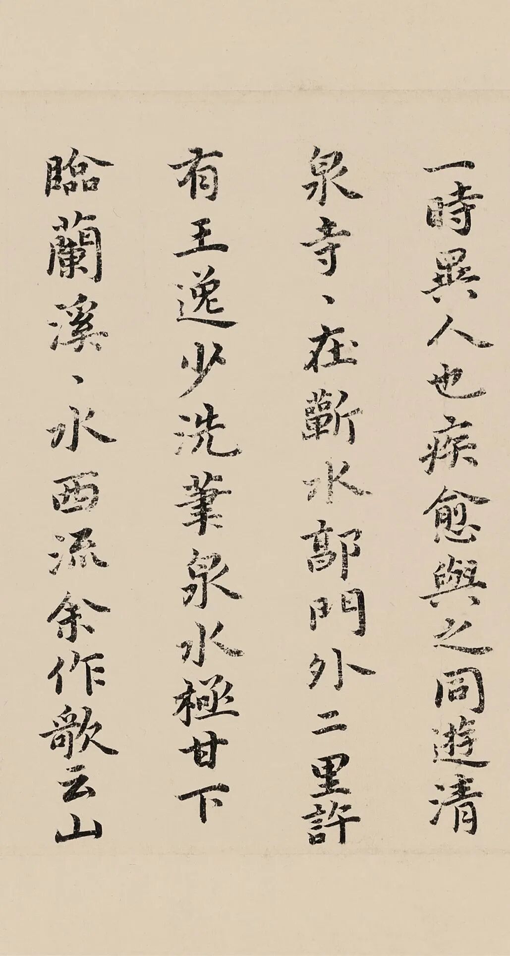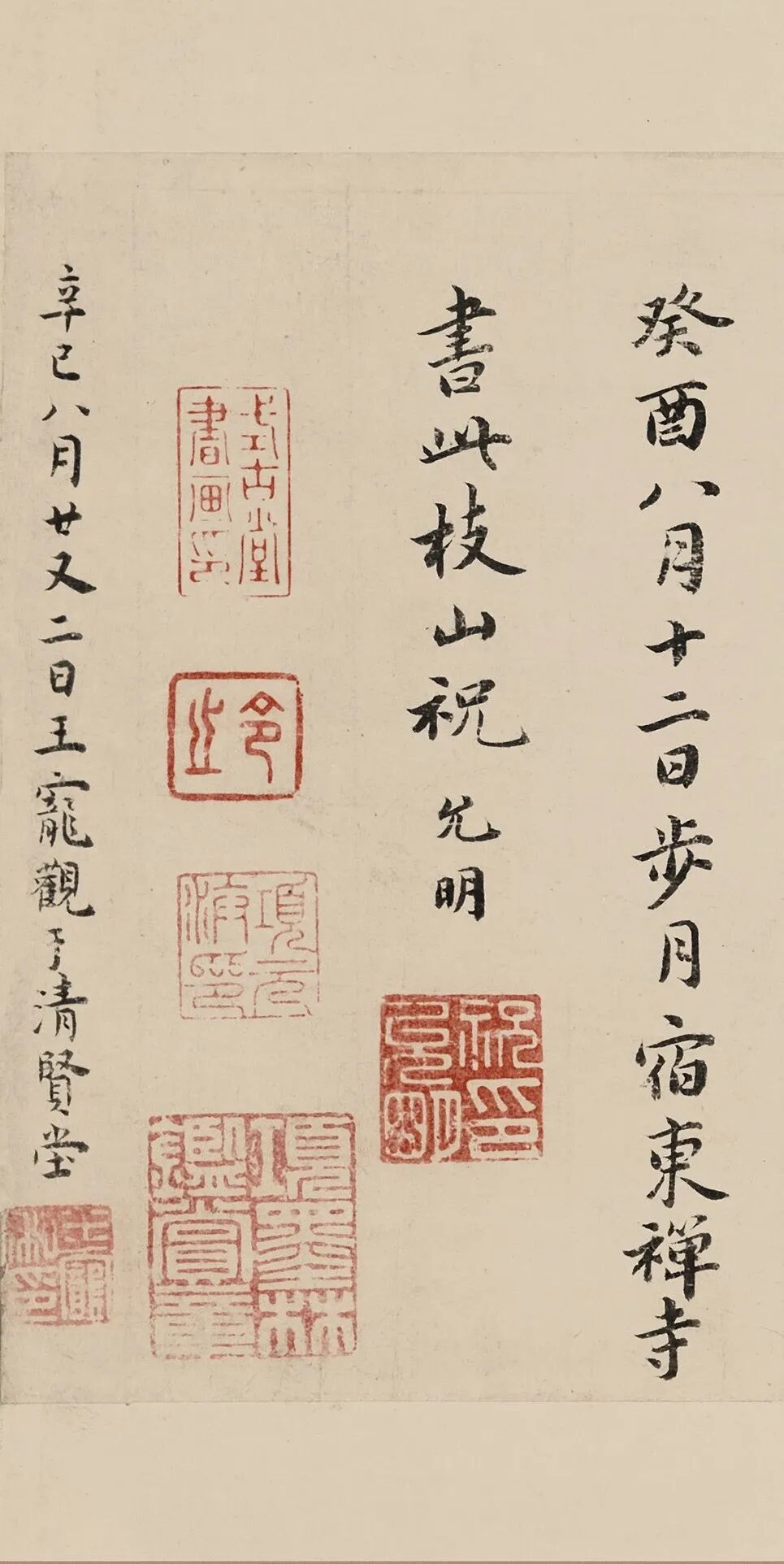 从正德八年的东禅寺,到辽宁省博物馆的珍藏,此卷历经五百余年沧桑,墨痕犹新。它让我们看见,那位以“枝山”自号的吴门才子,以其古雅遒丽的小楷,书写着东坡的月夜闲游、山水之乐,寄托着文人超然物外的心境。那藏锋起笔的含蓄,是他对钟繇的继承;那疏密自然的结字,是他个人才情的体现;那从容平和的气韵,更是他“集众长”书法理念的写照。