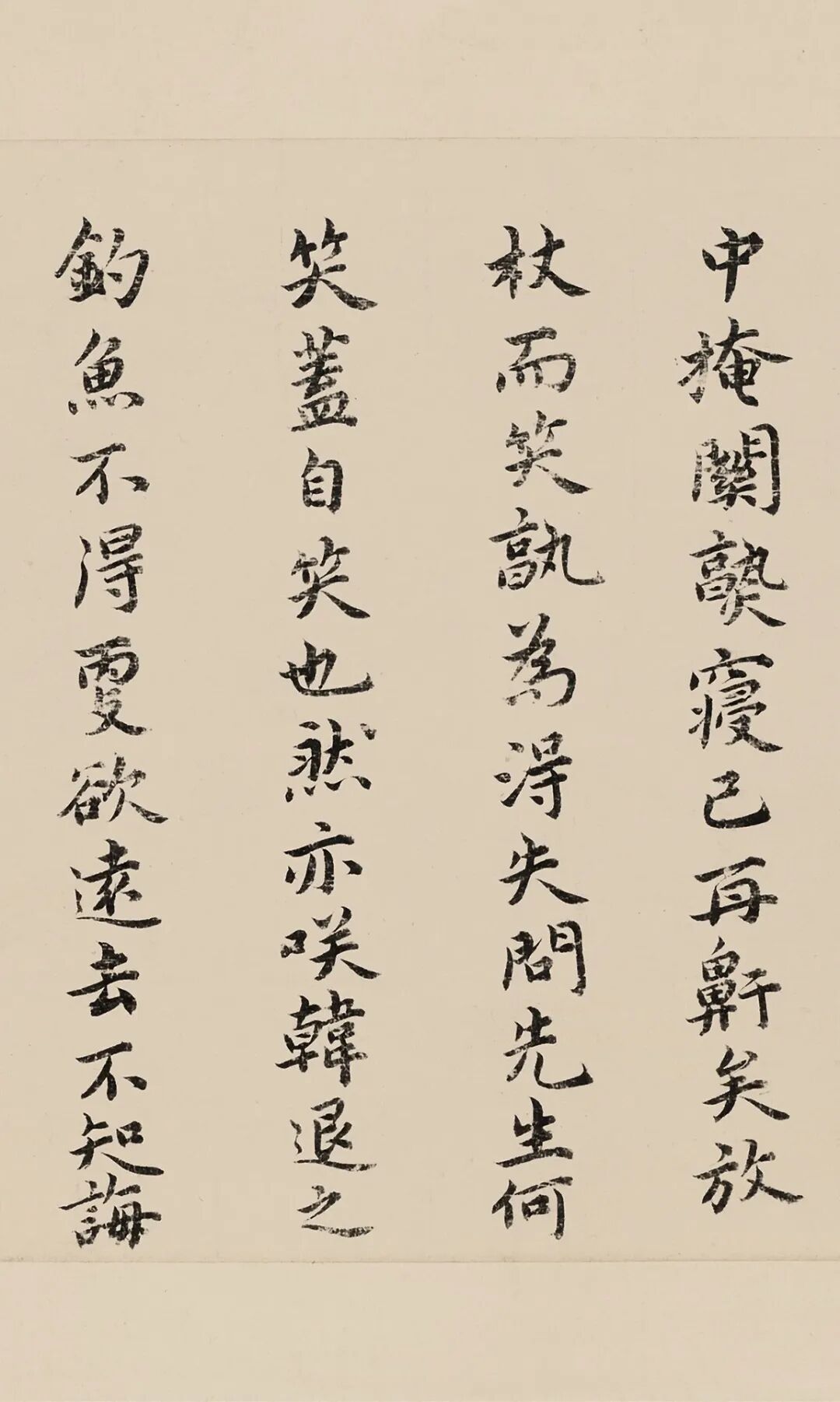 2. 结字:疏密自然,古雅平和· 字形偏扁,重心安稳:结字以偏扁为主,重心平稳,如“入”“户”“欣”“然”等字,端雅而不失灵动。· 中宫宽绰,气息通透:中宫宽绰,内部空间留白得宜,如“起”“行”“念”“无”等字,气息通透,无局促之感。· 疏密得宜,虚实相生:点画之间疏密对比自然,如“与”“为”“乐”“者”等字,或左密右疏,或上密下疏,变化微妙。