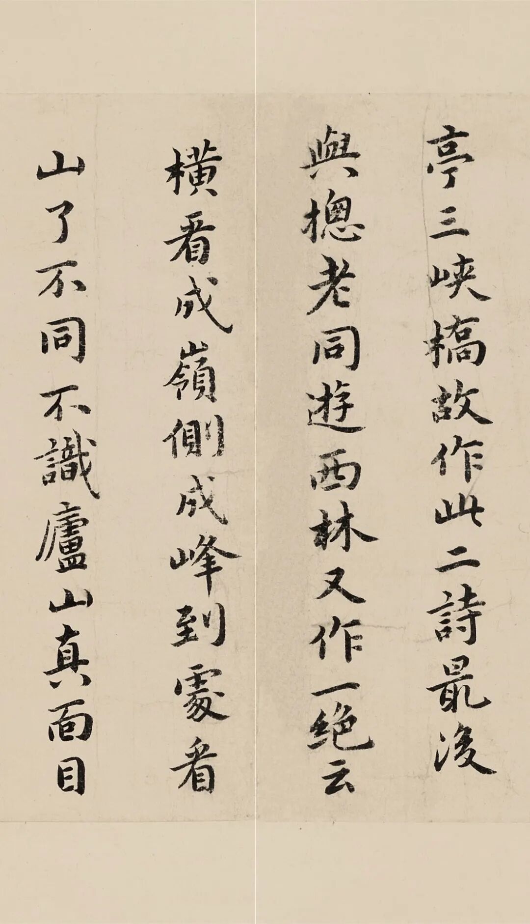 自记庐山诗仆初入庐山,山谷奇秀,平日所未见,殆应接不暇,遂发意不欲作诗。已而见山中僧俗皆云:“苏子瞻来矣!”不觉作一绝云:“芒鞋青竹杖,自挂百钱游。可怪深山里,人人识故侯。”既而哂前言之谬,复作两绝句云:“青山若无素,偃蹇不相亲。要识庐山面,他年是故人。”又云:“自昔忆清赏,神游杳霭间。如今不是梦,真个在庐山。”是日,有以陈令举《庐山记》见寄者,且行且读,见其中有云徐凝、李白之诗,不觉失笑。开先寺主求诗,为作一绝云:“帝遣银河一派垂,古来惟有谪仙词。飞流溅沫知多少,不与徐凝洗恶诗。”往来山南北十余日,以为胜绝,不可胜谈,择其尤者,莫如漱玉亭、三峡桥,故作二诗。最后与总老同游西林,又作一绝云:“横看成岭侧成峰,到处看山了不同。不识庐山真面目,只缘身在此山中。”仆庐山之诗,尽于此矣。