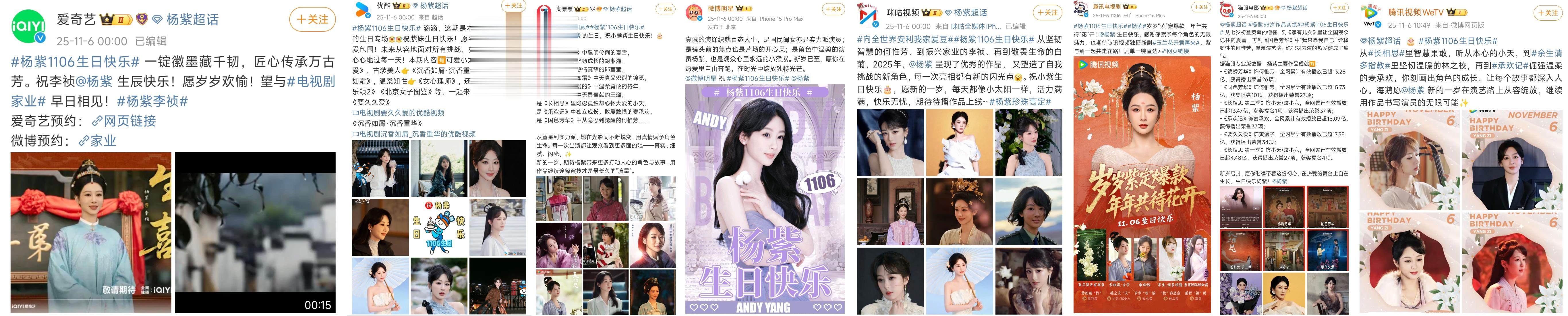 各大平台非常用心地以紫妹优秀作品和待播剧集的素材为贺,祝愿紫妹能带来更多打动人心的角色与故事[送心][送心]
