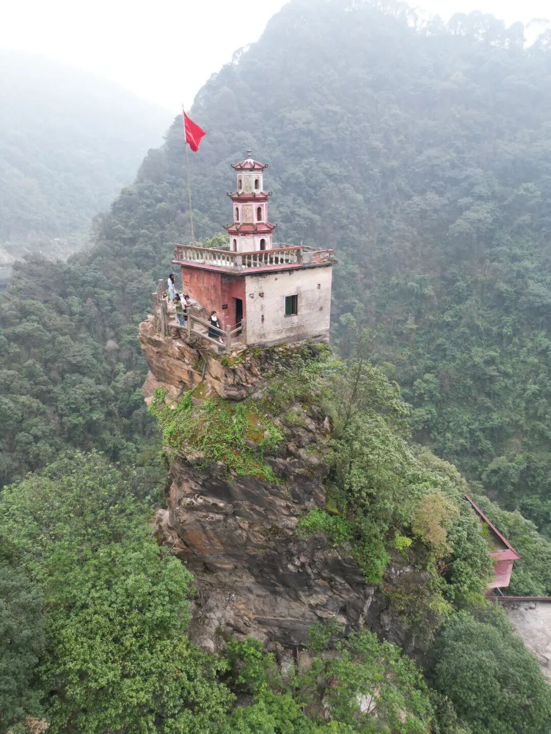 看完龙源口桥,如果你是自驾来的,不妨继续往山里开6公里,山间有一座阿育塔,一座高180米天然石峰形似佛塔且山顶建有小庙。明万历及清光绪《永新县志》记载其“石峰若塔,上耸绝崖,下俯重渊,伴有飞来石”。