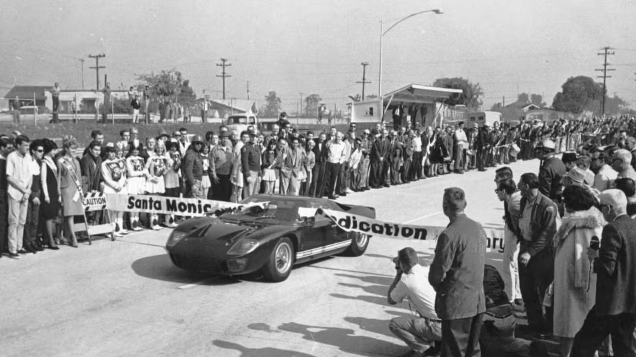 1965年,底盘P/1018在英国诞生,同年11月以“展示规格”交付谢尔比美国公司,随后便筹备亮相西雅图车展。或许是冥冥中预示了GT40研发过程的波折,这台车在前往车展的途中,车头遭遇轻微损坏,经紧急修复后才顺利参展。而它最具标志性的历史瞬间,发生在1966年:谢尔比受圣塔莫尼卡市邀请,驾驶这台搭载289立方英寸V8发动机的GT40,载着当年的圣塔莫尼卡小姐驶过新建成的圣塔莫尼卡高速公路。这并非激烈的赛道测试,却成为谢尔比与这台GT40绑定的独特记忆,也成了汽车史上一段小众却珍贵的注脚。