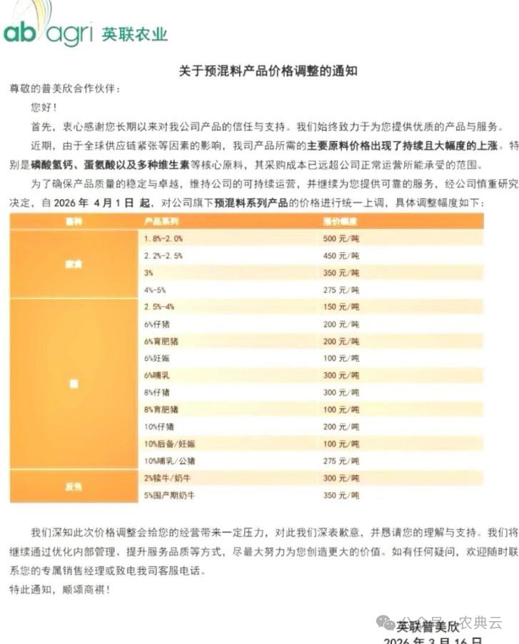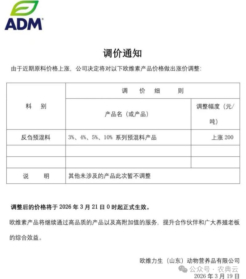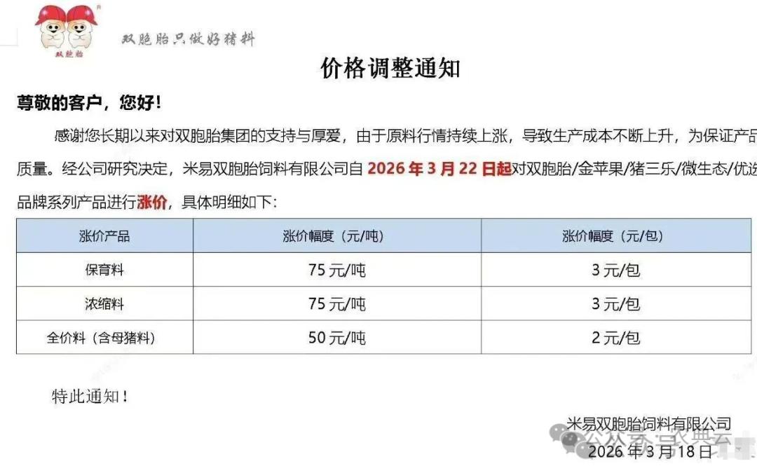 3月下半月以来,各地饲料价格继续上涨,其中仅仅20日和21日两天就有20多家饲料厂涨价。据不完全统计,3月以以来截止3月22日,超过150多家饲料厂先后涨价,预计在3月的最后八九天里,还会有更多饲料厂涨价,整个3月份涨价的饲料厂有可能超过200家,这个数字创下历史最高记录的同时,恐怕以后很多年都不会出现这种现象了,请养殖户朋友多多优化模式,合理控制成本风险。