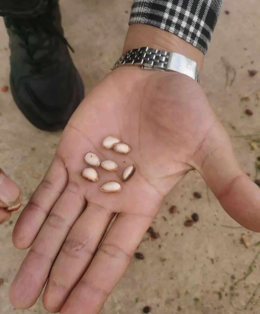 接着,把松籽儿倒进盆里,加满水搅拌,瘪掉的籽儿会浮在水面,被一一捞出,留下饱满的颗粒放在阳光下晾晒。等到赶场那天,农户们便背着装松籽的布袋去集市,松籽儿按斤售卖,换来的钱用来补贴家用,给孩子买文具,给老人买药品。