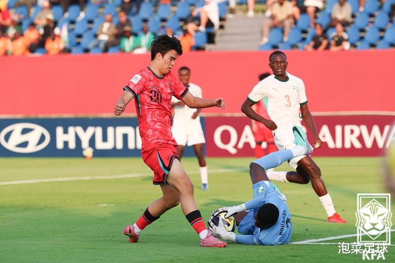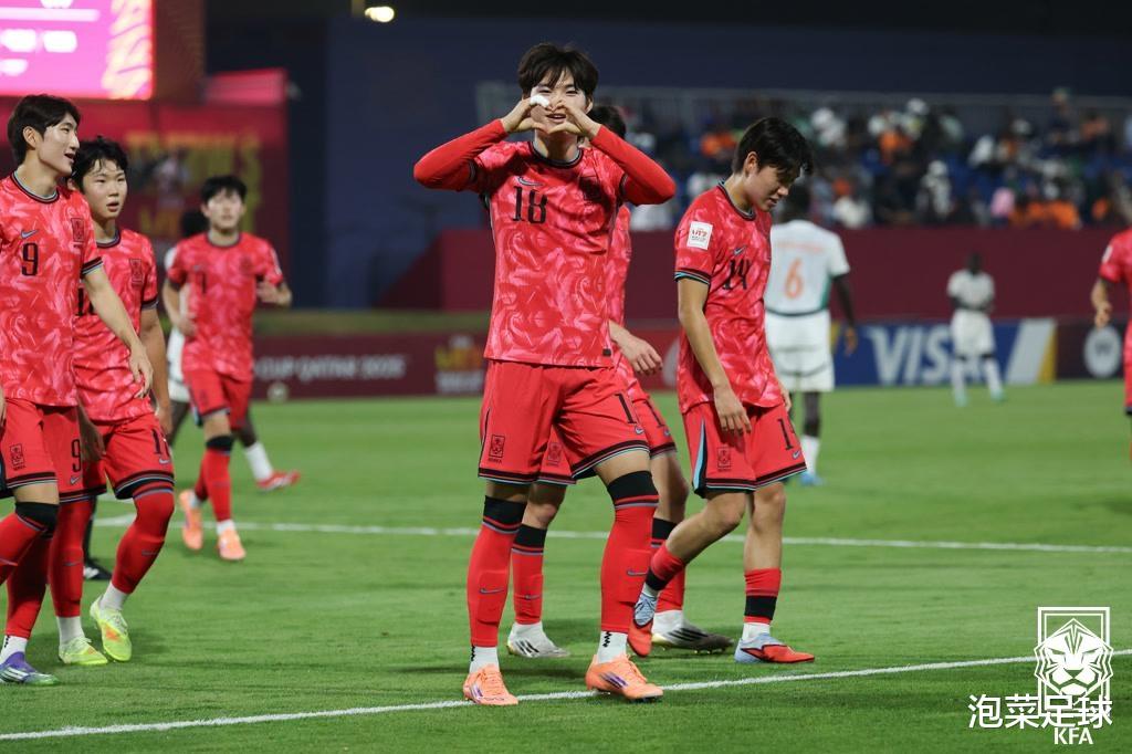 在出征卡塔尔前,韩国U17的目标就是超越上届小组赛的成绩(小组未出线),在前两场比赛打出1胜1平的情况下,第三场比赛他们只需要打平对手,就可以稳稳获得出线权。而他们却用胜利,完成了既定的目标!卡塔尔当地时间11月10日晚,在多哈的阿斯拜尔运动场,韩国U17最终以3-1的比分击败科特迪瓦U17,最终以2胜1平的成绩,因净胜球劣势位居瑞士之后,以F组第二身份晋级淘汰赛。他们,也成为了今年韩国青年国字号中第一支在国际大赛小组突围的团队。