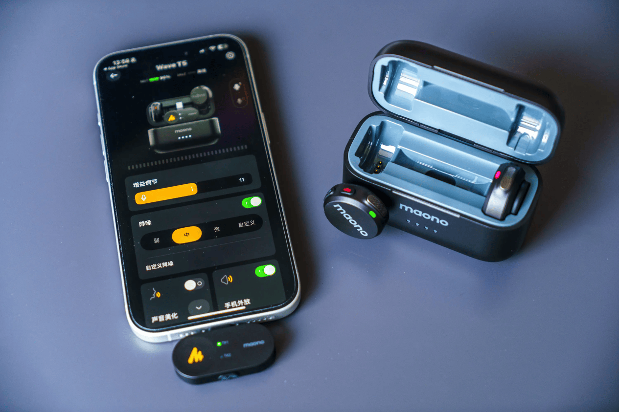 闪克Wave T5采用一拖二结构设计,支持双人录音,配备收纳充电盒,使用灵活。其信噪比为80dB,频率响应20Hz-20kHz,采样精度48kHz/24bit,搭载独创“音盾”AI降噪系统,可通过APP调整降噪强度。无线传输距离在无遮挡环境下可达300米,信号稳定。续航表现出色,单发射器约9小时,搭配充电盒综合续航高达30小时。设备兼容手机、相机、电脑等多平台,支持一键降噪、静音及回放功能。对于预算有限又追求全能功能的用户,闪克Wave T5是一个平衡度较高的选择。