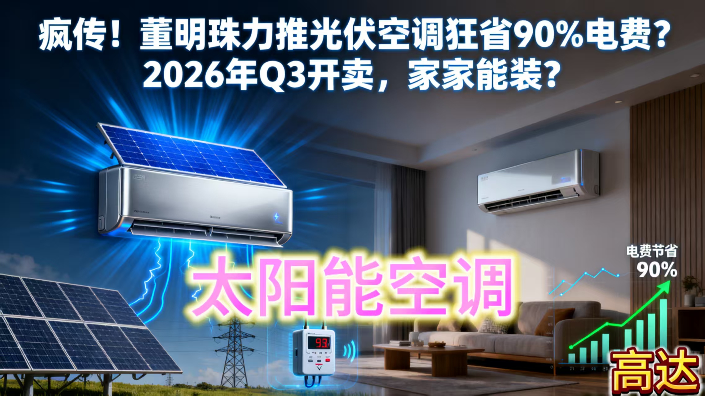 最近家电圈炸翻天:“格力要让电网收不到电费了!”网传董明珠力推的升级款光伏空调,发电量暴涨25%,夏天开空调不仅不花钱还能卖电,2026年Q3就供家庭用户,有网友直呼“装一台十年省出空调钱,高温天再也不怕电费单”。