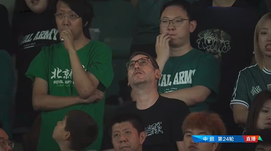 终于,柏杨在压力之下做出愚蠢动作,在对手带球离开禁区时伸脚踩踏,白送一记点球。这一刻看得塞蒂恩心灰意冷,在对手主罚点球之前,他低下高傲的头颅,坐在替补席垂头丧气(上图)。河南队点球打进以2比0领先后,只见看台上有一国安球迷双眼通红,一脸神伤(下图)。