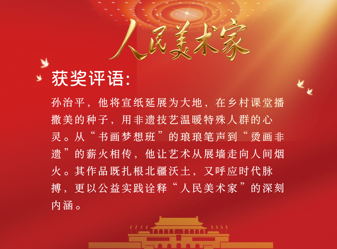 数十载笔墨耕耘,孙治平用执着浇灌艺术之花;数十年公益践行,他用担当传递温暖力量。从创作困境中的突围重生,到参展舞台上的屡获认可;从校园里的非遗传承,到特殊群体的艺术疗愈,在孙治平的身上,我们看到了新时代艺术家“执着追求、心怀家国”的精神风貌,也见证了艺术超越审美、赋能社会的无限可能。