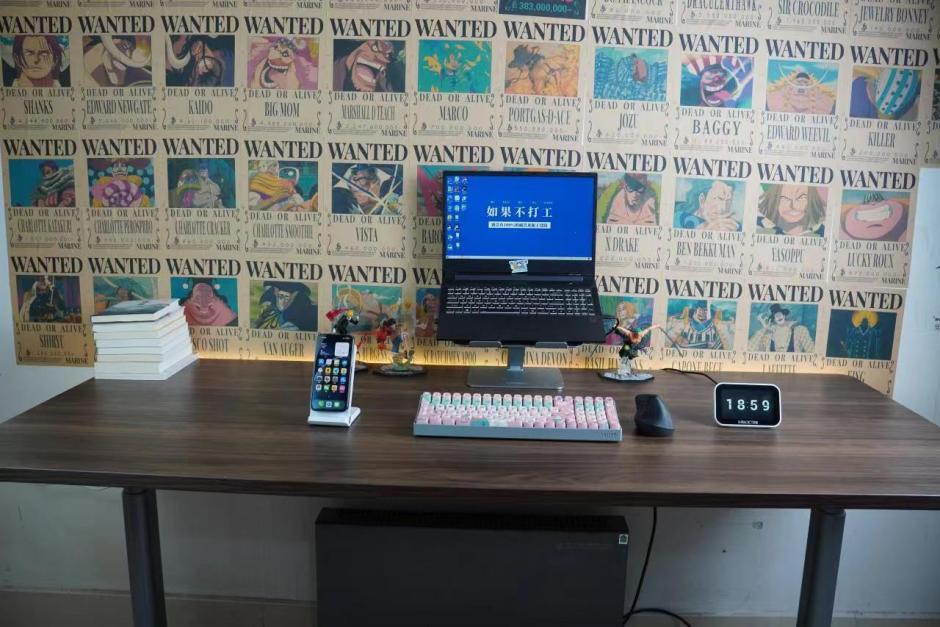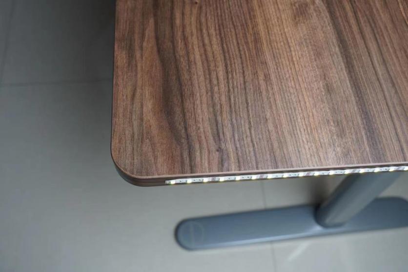 直观可见,乐歌升降桌iE6的颜值是升降桌产品中的绝绝子,在同类型产品中非常突出。桌面颜色有很多种颜色供选择,纹理不仅好看,还防刮耐磨,非常有质感,材质也很厚实,桌面厚度有2.5厘米。为了搭配我的墙壁海报,我入手的是银灰色桌腿+灰木纹桌板,这低调的颜色和高级的质感,高档的气质遮都遮不住。
