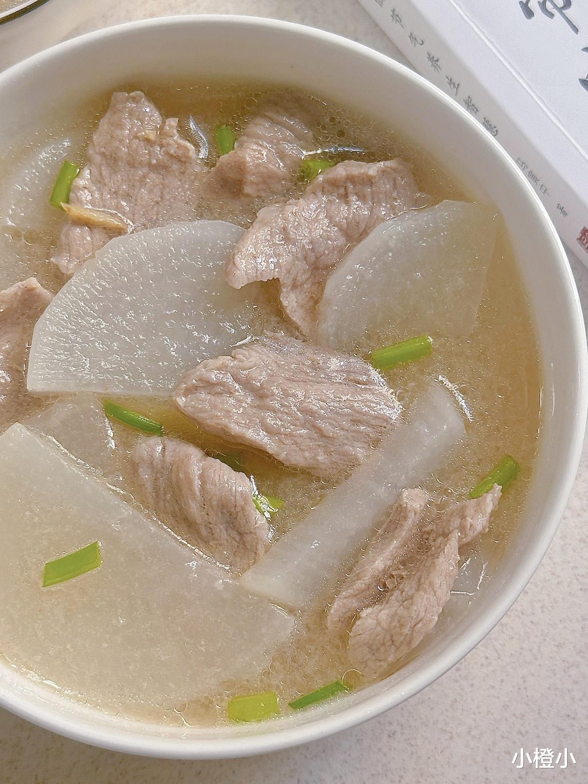 奶白汤汁飘着绿星星,萝卜透明如和田白玉,肉片粉粉嫩嫩。先来一口汤——鲜!是那种“萝卜自己努力”的鲜甜,不带味精的张扬。肉片筷子一夹就断,牙齿轻碰淀粉衣“噗嗤”裂开,肉汁“吱”一下溅到舌尖。喝完胃袋暖成毛茸茸的猫,打个嗝都是萝卜香。娃把汤泡饭,自动清盘;减脂期的我直接当晚餐,热量不到250大卡,半夜不饿。
