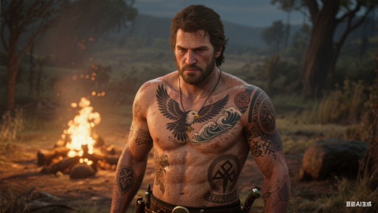 不同风格的纹身绝非毫无章法地随意堆砌。美国传统纹身,以其经典的图案和鲜明的色彩,象征着他作为西部牛仔的身份烙印,那是他在这片狂野西部土地上生活的标志,是自由与冒险的象征;日式纹身,带着细腻的线条与独特的寓意,暗合他在漫长流浪生涯中偶然接触的异域文化,那些图案里藏着他漂泊途中的见闻与感悟;而维京符文,则呼应着他内心深处对 “荣耀” 与 “救赎” 的渴望。在那个混乱无序的时代,亚瑟渴望在冒险与战斗中寻得荣耀,也希望能在内心的挣扎里获得救赎。